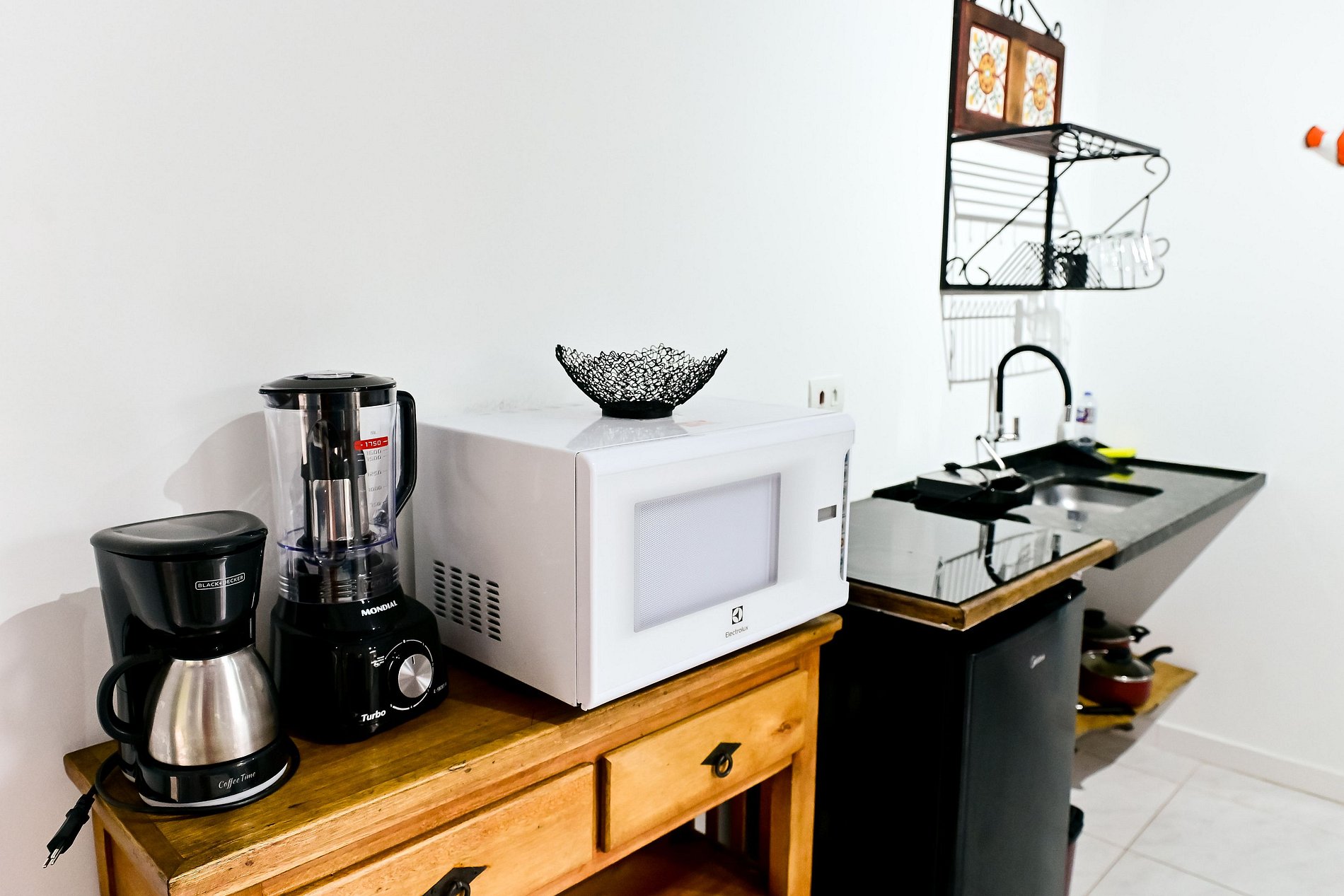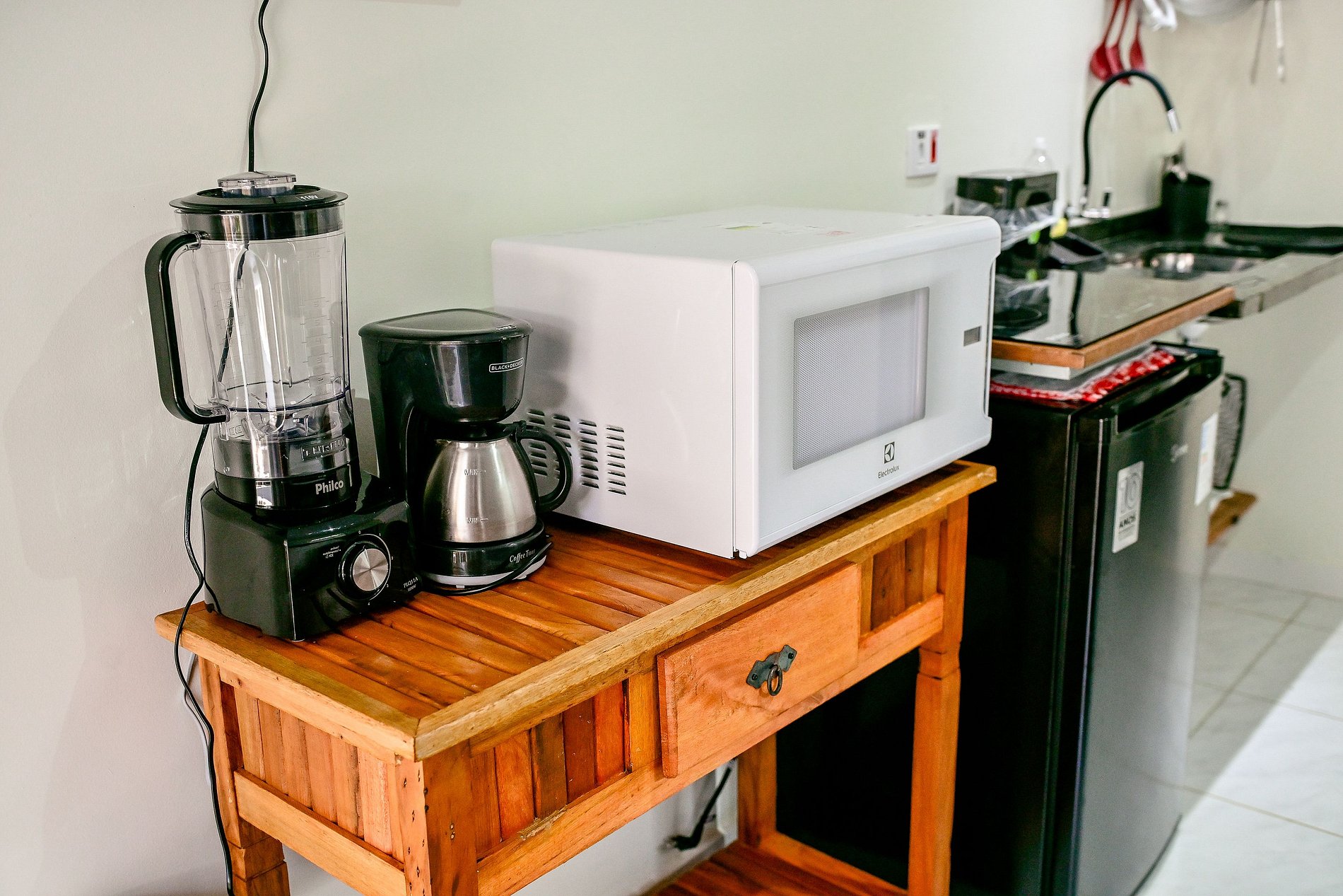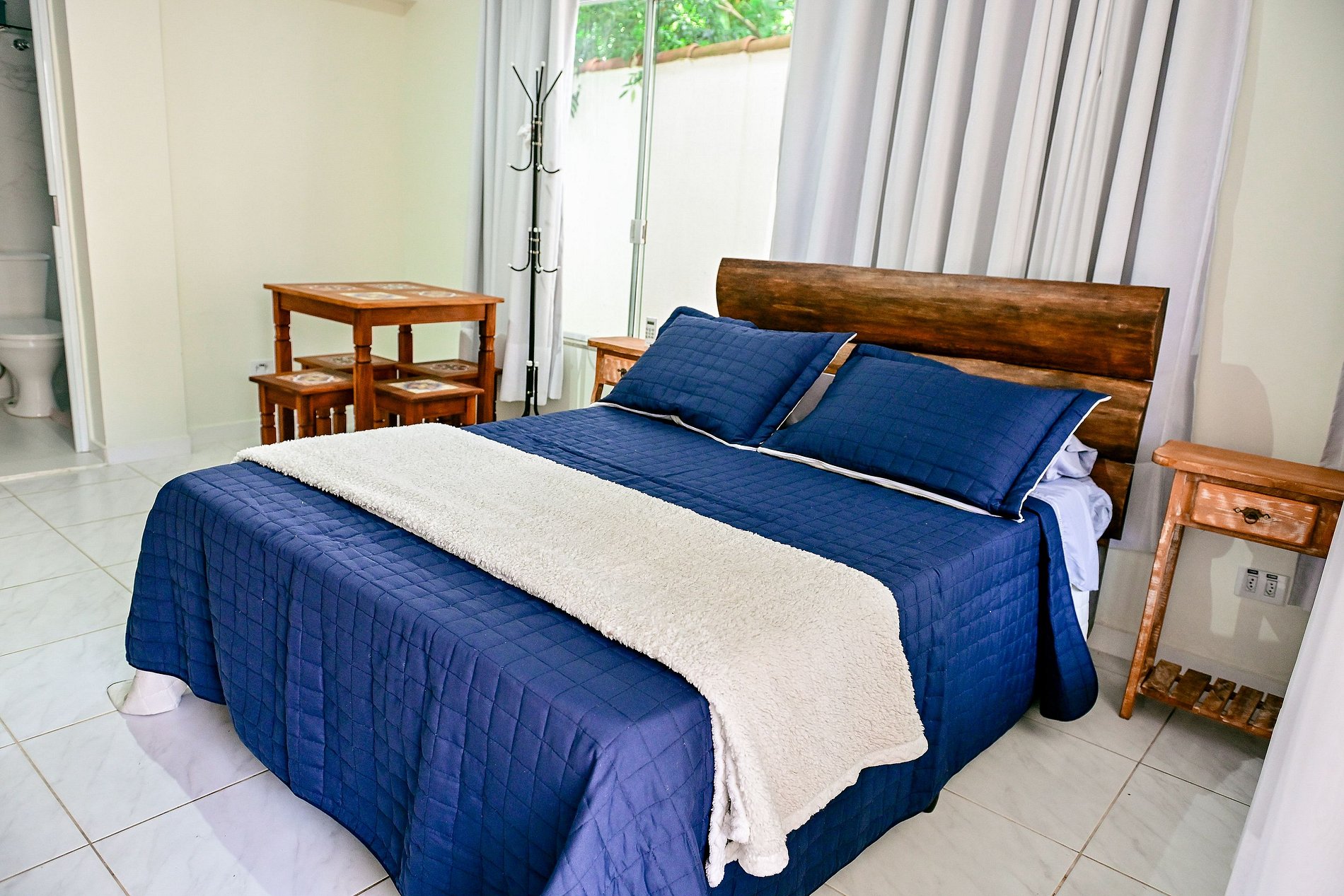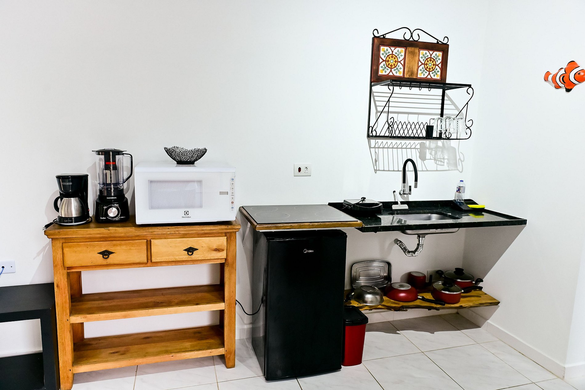 Uma suíte charmosa para duas pessoas, com ar-condicionado, TV e cozinha totalmente equipada para você se sentir em casa. A varanda fica no meio da mata, trazendo aquele clima fresco, o canto dos pássaros e a tranquilidade típica da Feiticeira. Um refúgio perfeito para descansar, aproveitar a natureza e viver dias leves com muito aconchego. E o melhor: a menos de 10 min andando da Praia da Feiticeira!