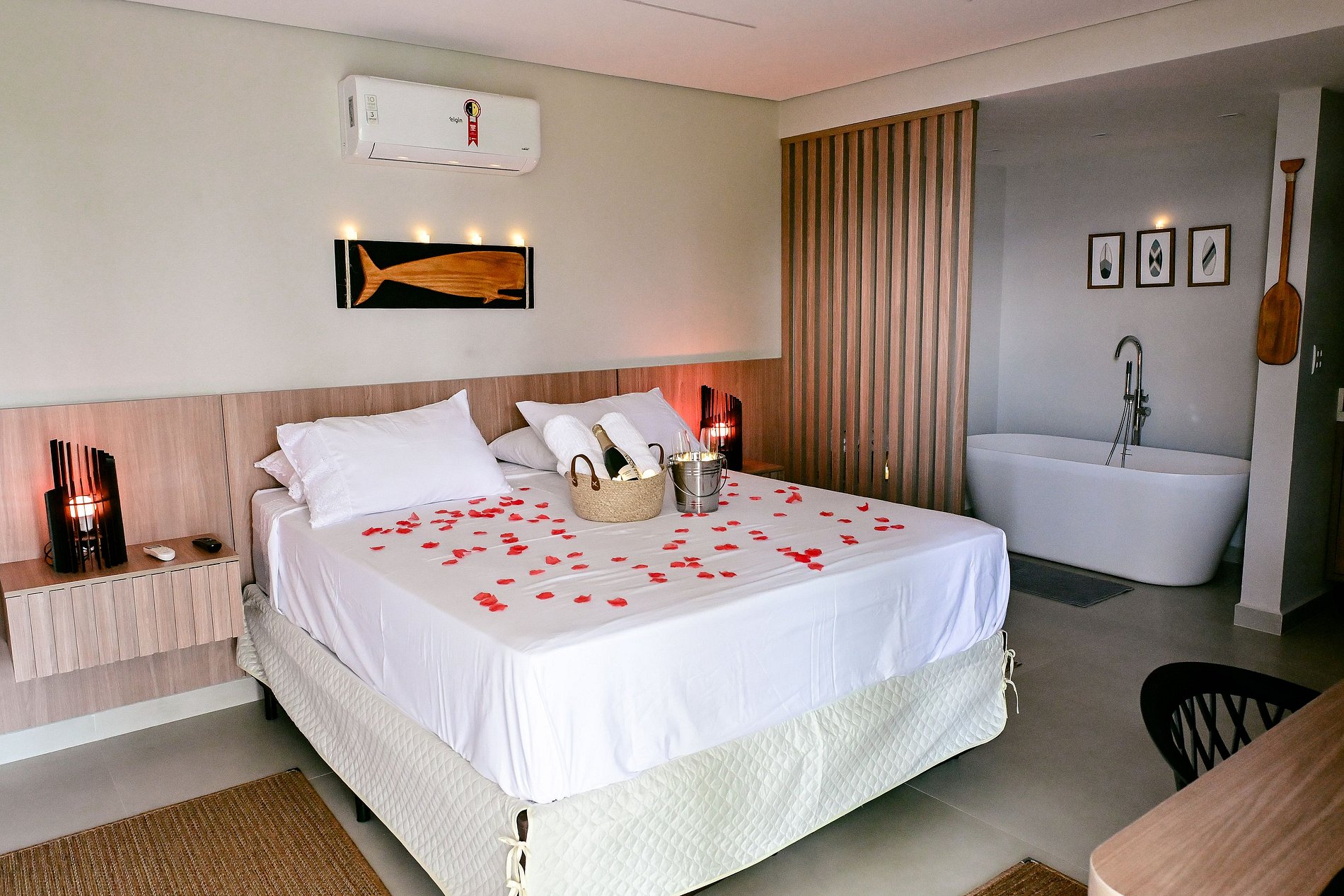 Este lugar único foi pensado para casais que valorizam excelência, tranquilidade e cuidado em cada detalhe. O estilo exclusivo se reflete na qualidade dos itens, na limpeza impecável e no conforto absoluto. O enxoval é de alto padrão, com café da manhã e roupões para tornar a experiência ainda mais aconchegante. O studio conta com banheira para momentos de relaxamento, além de micro-ondas, cafeteira, TV de 55” e ar-condicionado, criando o cenário perfeito para dias especiais a dois.