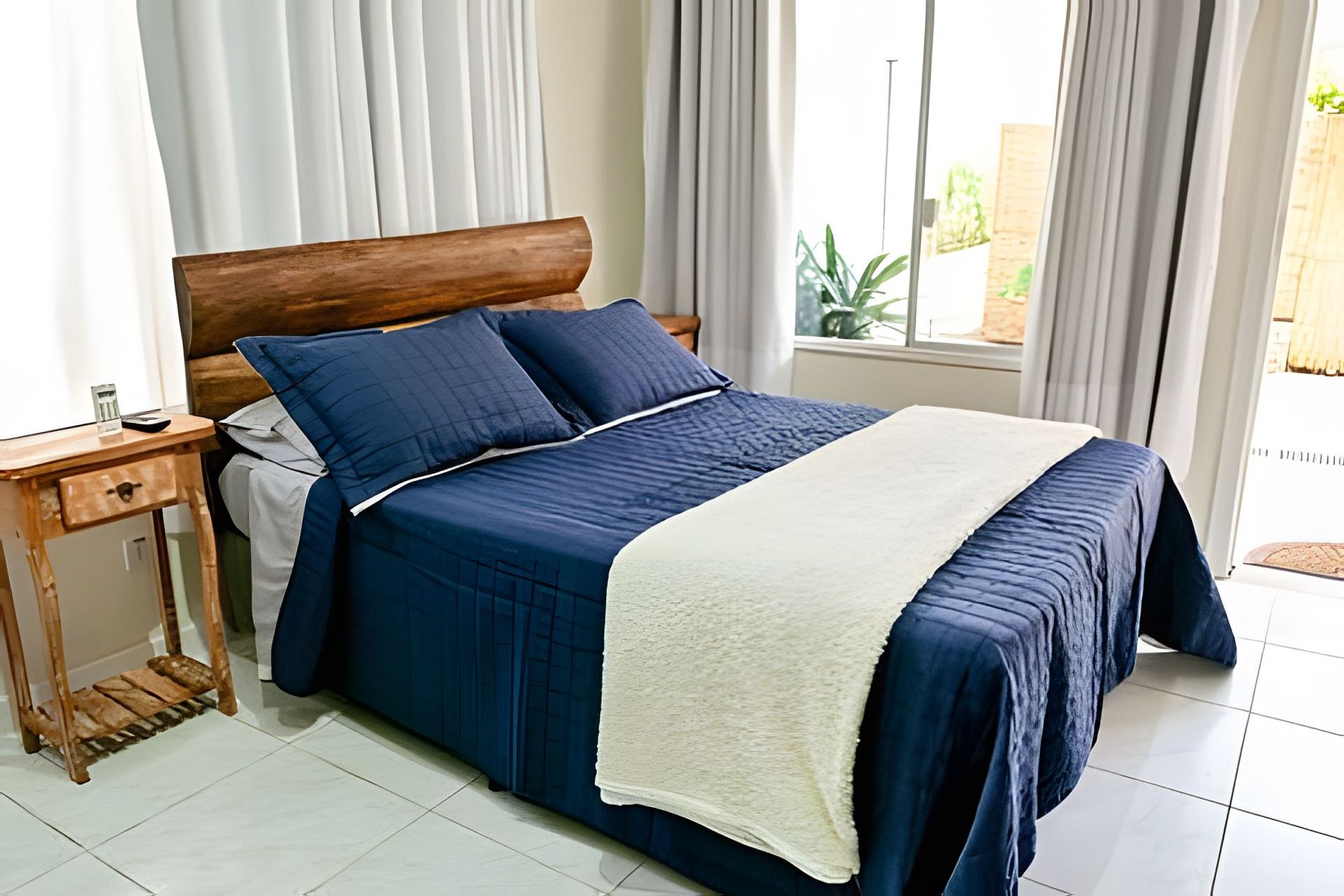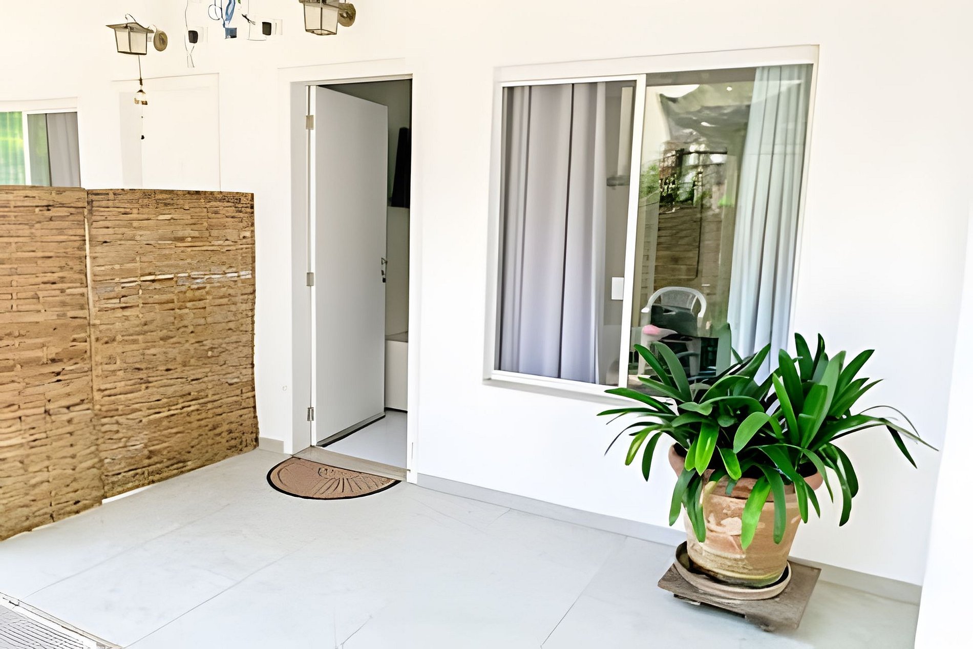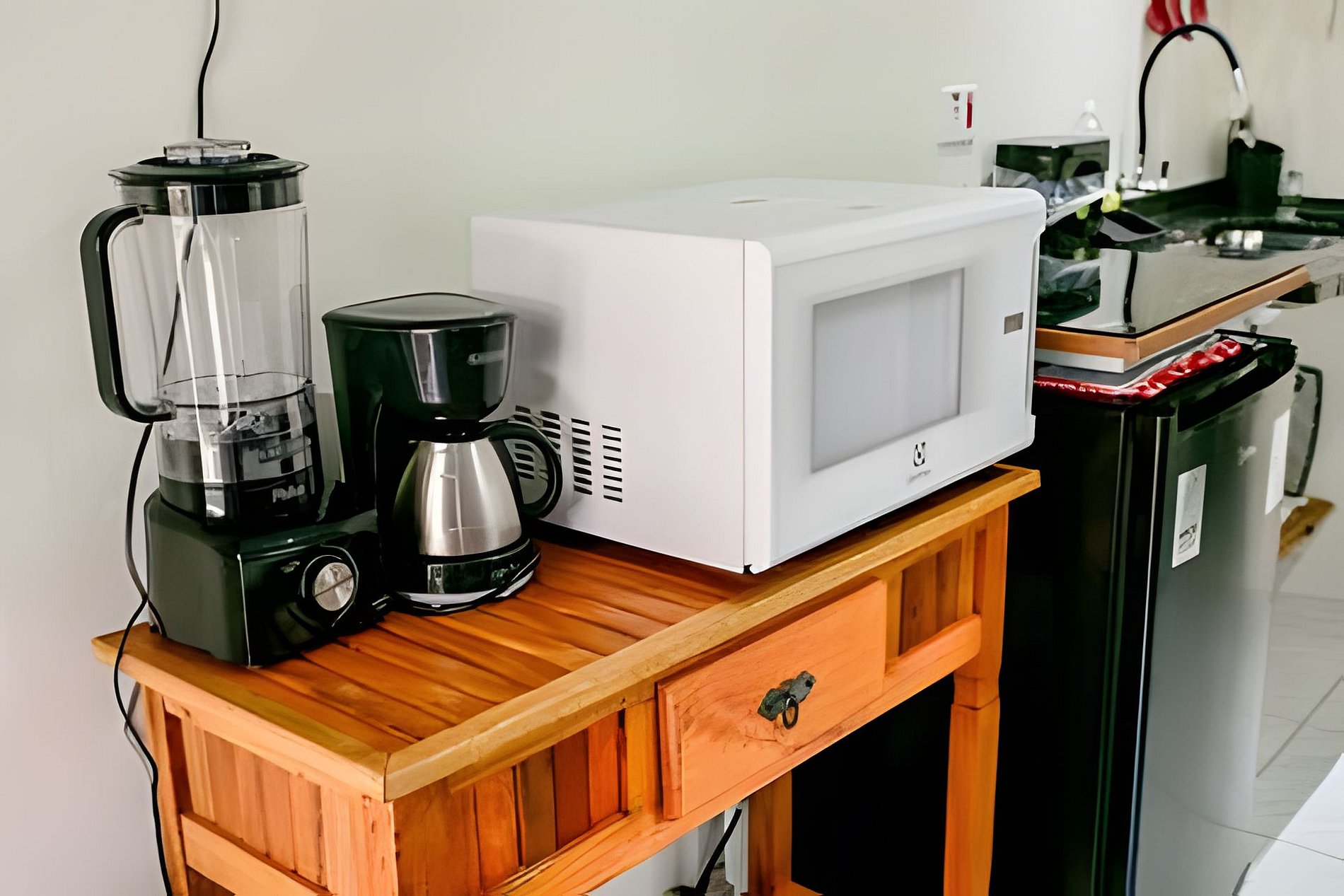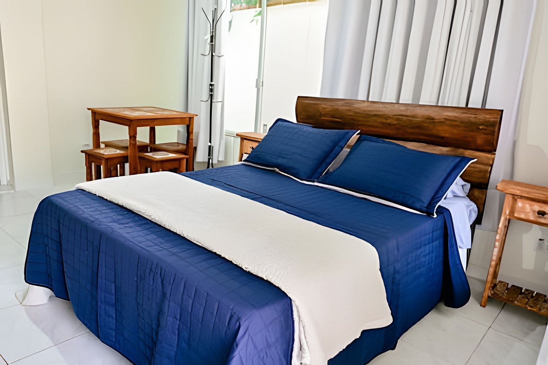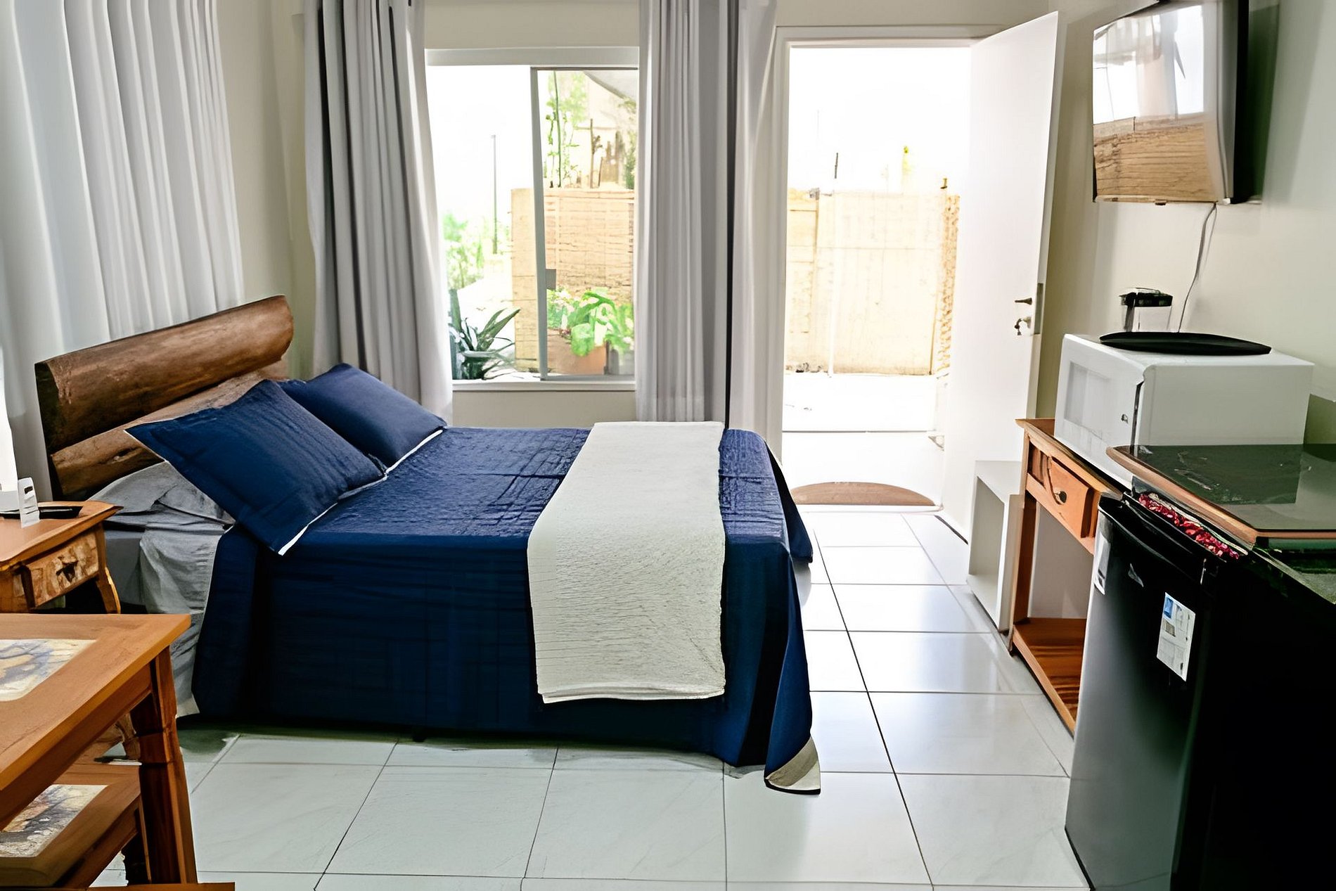 Uma suíte charmosa para duas pessoas, com ar-condicionado, TV e uma cozinha totalmente equipada para você se sentir em casa. O destaque está na varanda: imersa na mata e com vista para um riacho cristalino. Aqui, o descanso é real — você adormece com o som suave da água e acorda cercado pela natureza da Feiticeira. E o melhor: a menos de 10 min de caminhada da Praia da Feiticeira.