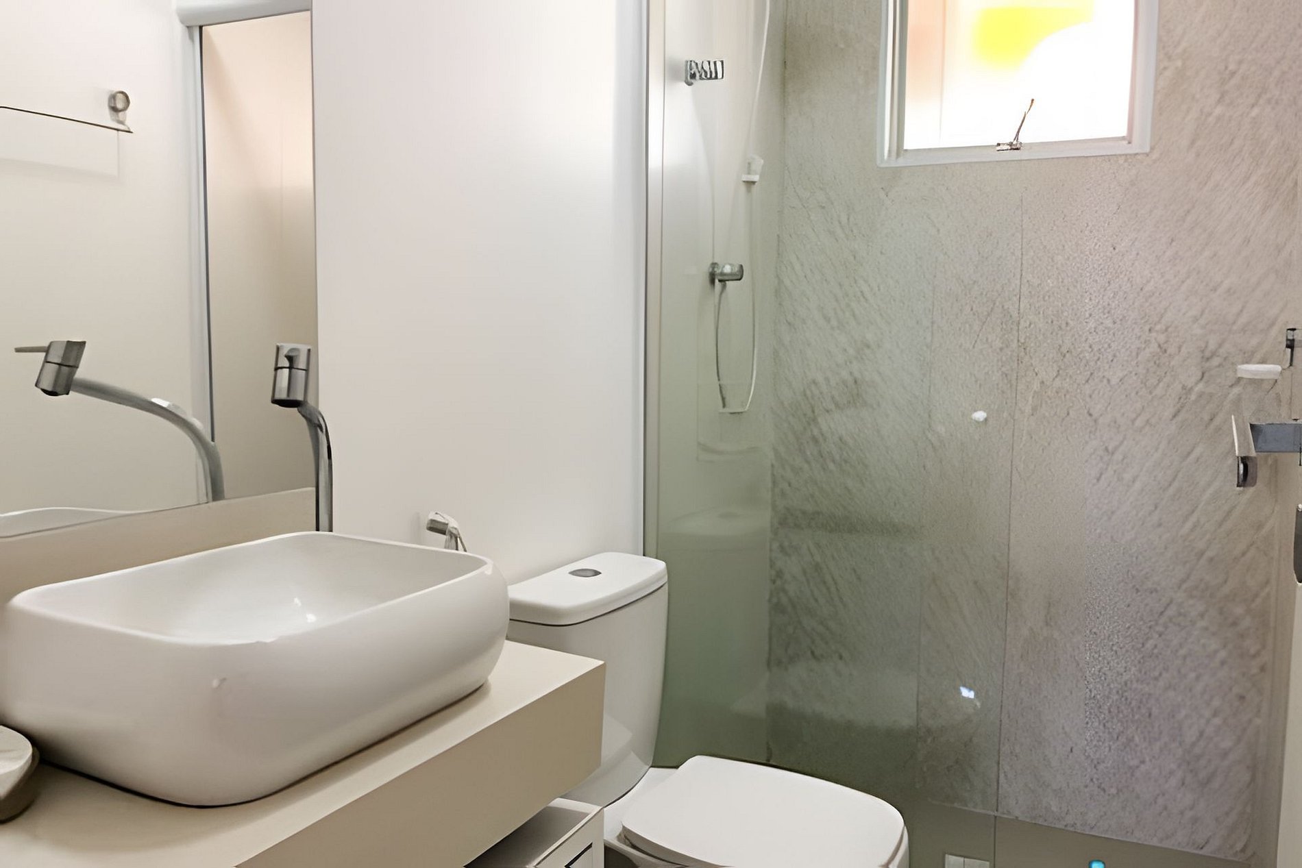 - Os chuveiros funcionam muito bem, mas por conta da instalação do prédio, devem ser usados um por vez.