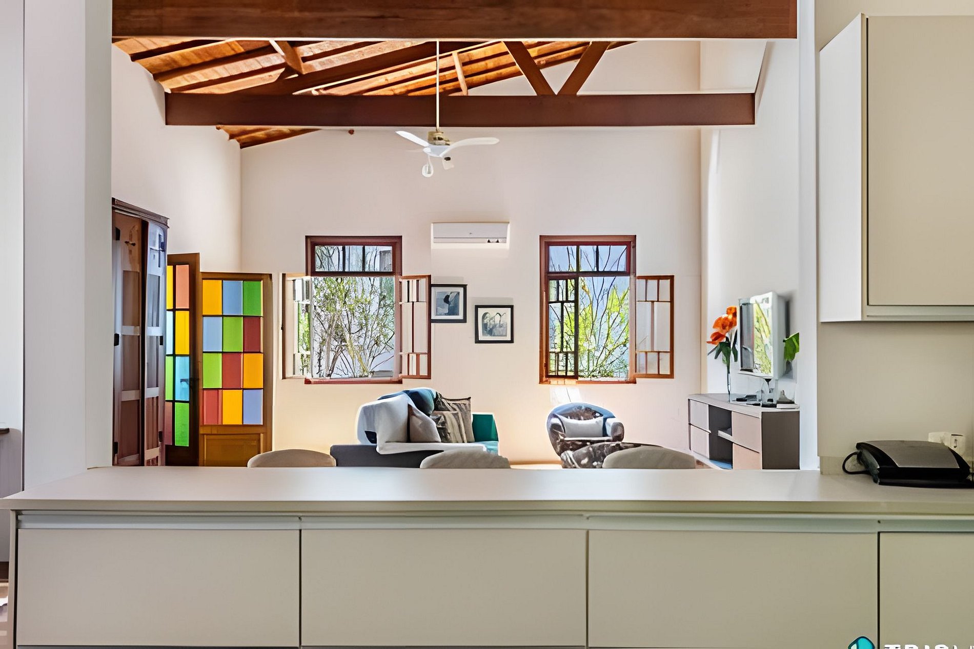 Uma casa incrível, com decoração e estrutura impecáveis, pertinho da praia! A Casa Vitral acomoda até 13 pessoas em 3 suítes confortáveis. Com cozinha equipada, ampla sala de estar com ar condicionado, lavanderia, piscina e churrasqueira, o espaço é perfeito para momentos de lazer. O grande jardim é ideal para crianças e pets brincarem à vontade. Localizada a apenas 5 minutos a pé da Praia da Feiticeira e a 5 minutos dos principais restaurantes, mercados, farmácias e adegas.