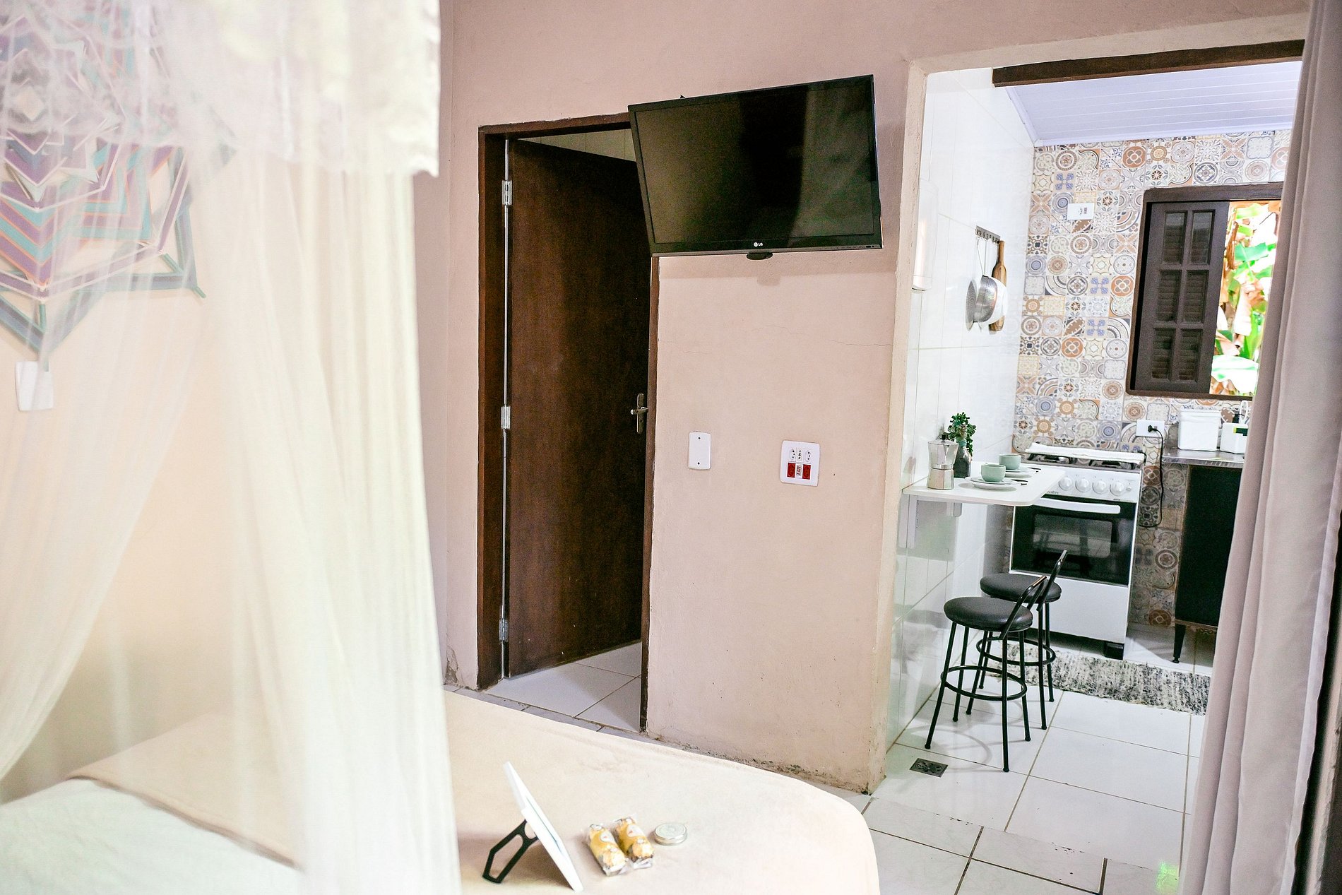 A Suíte 1 do Chalé da Libélula é ideal para casais que buscam uma estadia tranquila e em contato com a natureza. Localizada a 5 min a pé da Praia Grande e a 15 min da Praia do Curral, do lado do mercado e restaurantes, essa charmosa suíte oferece cama de casal, smart tv, ventilador de teto e cozinha totalmente equipada. Nosso pátio interno arborizado é perfeito para desfrutar o delicioso café da manhã enquanto ouve os pássaros, ou tomar uma cerveja ou vinho sob as estrelas, após um dia de praia.