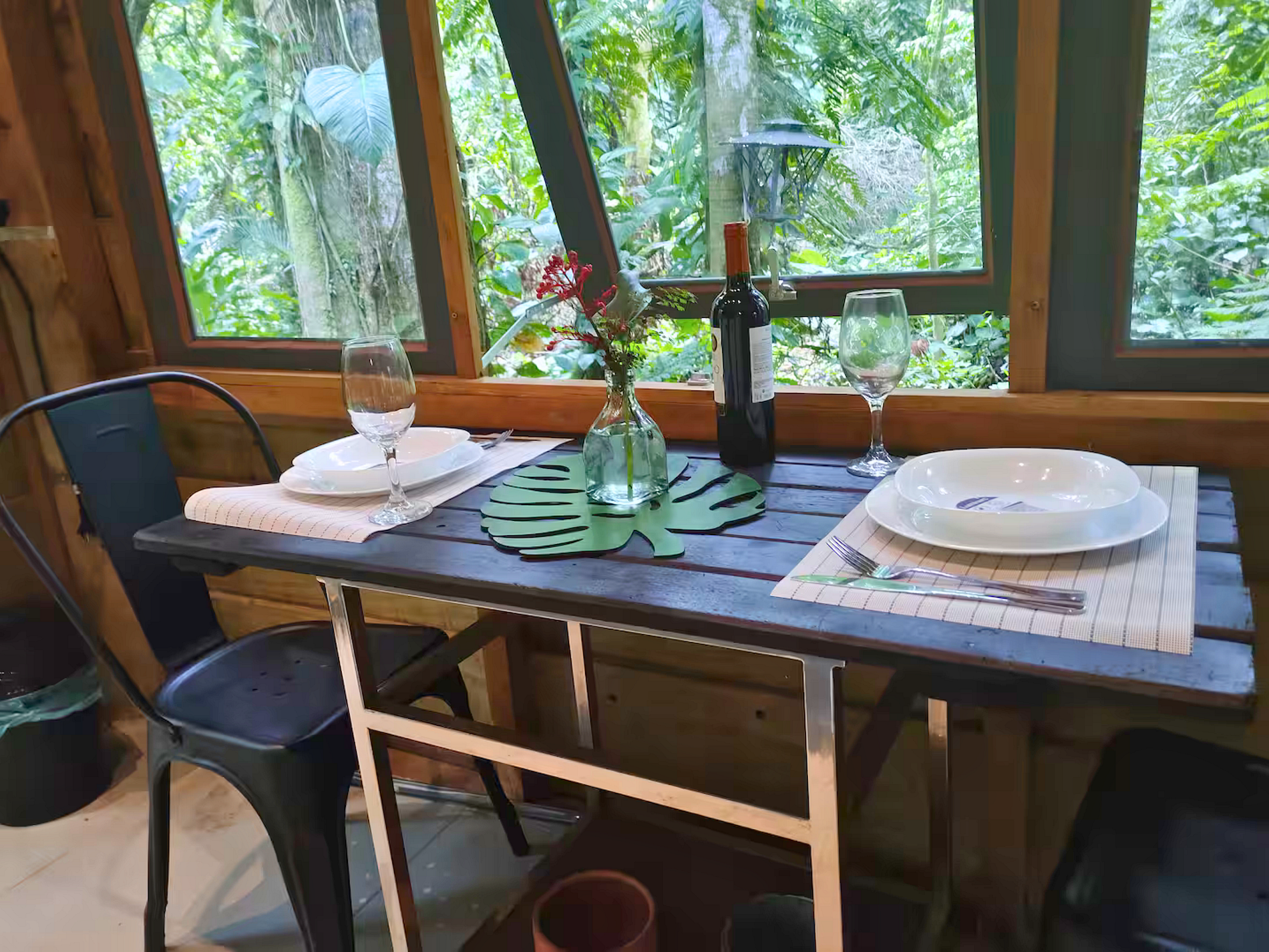 Refúgio perfeito para casais, nosso chalé romântico está envolto por um rio cristalino no coração da Mata Atlântica. Cercado por natureza exuberante, oferece total privacidade e charme rústico. Relaxe na jacuzzi ao som das águas, desfrute de uma cozinha totalmente equipada e durma com o canto dos pássaros. Um paraíso exclusivo, onde luxo e simplicidade se encontram para momentos inesquecíveis a dois.