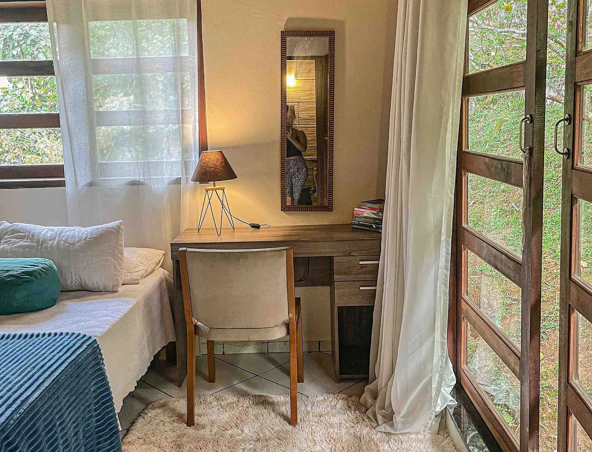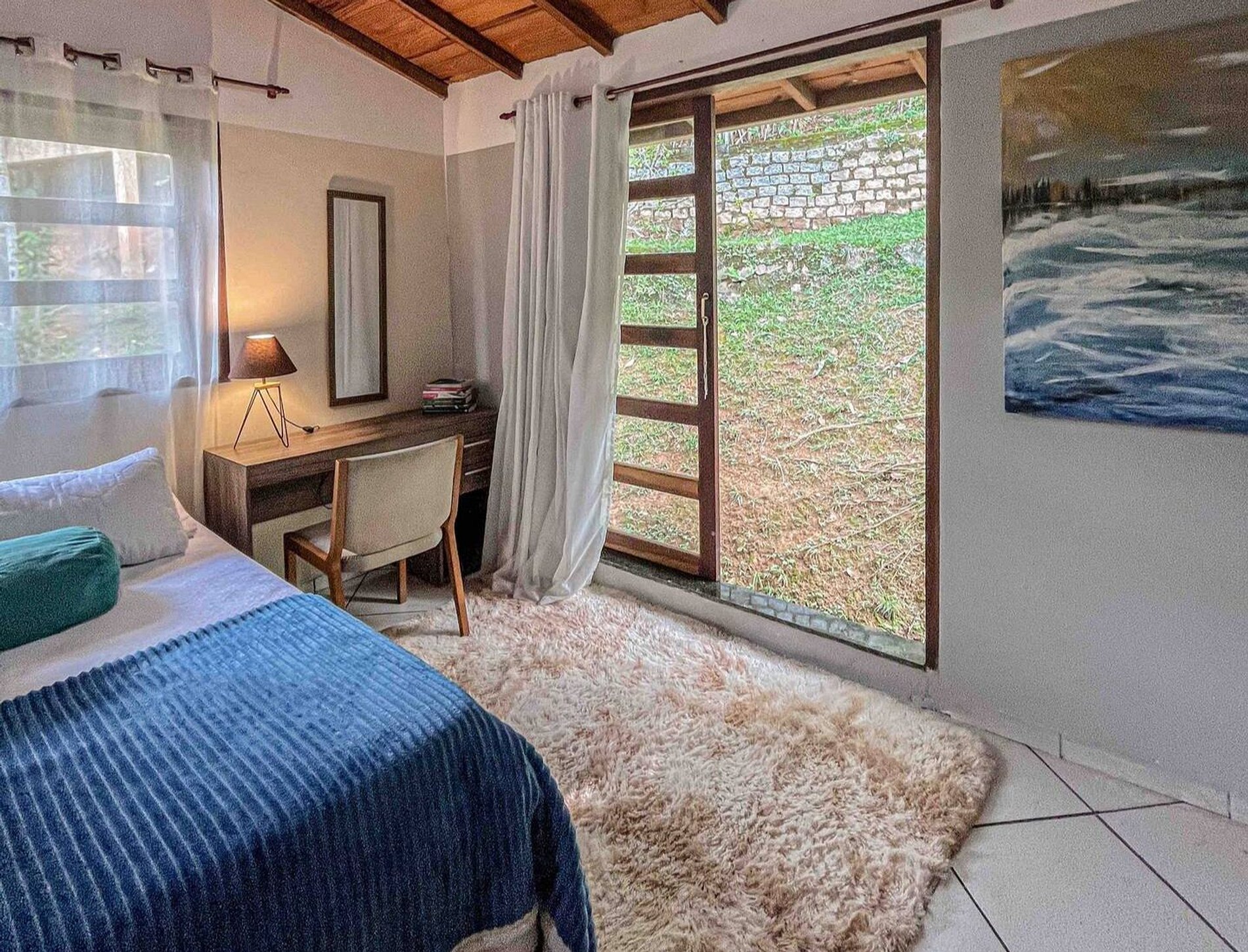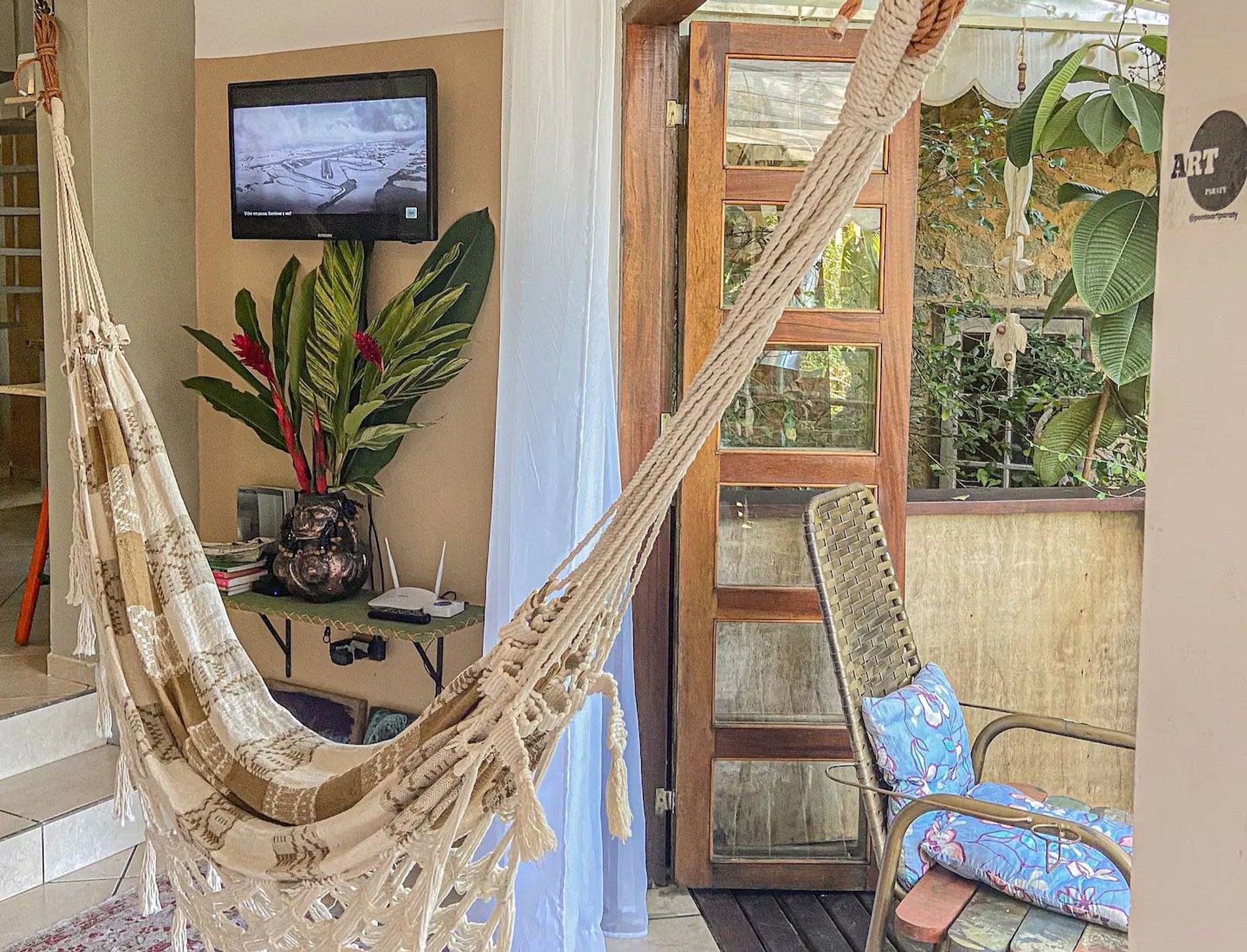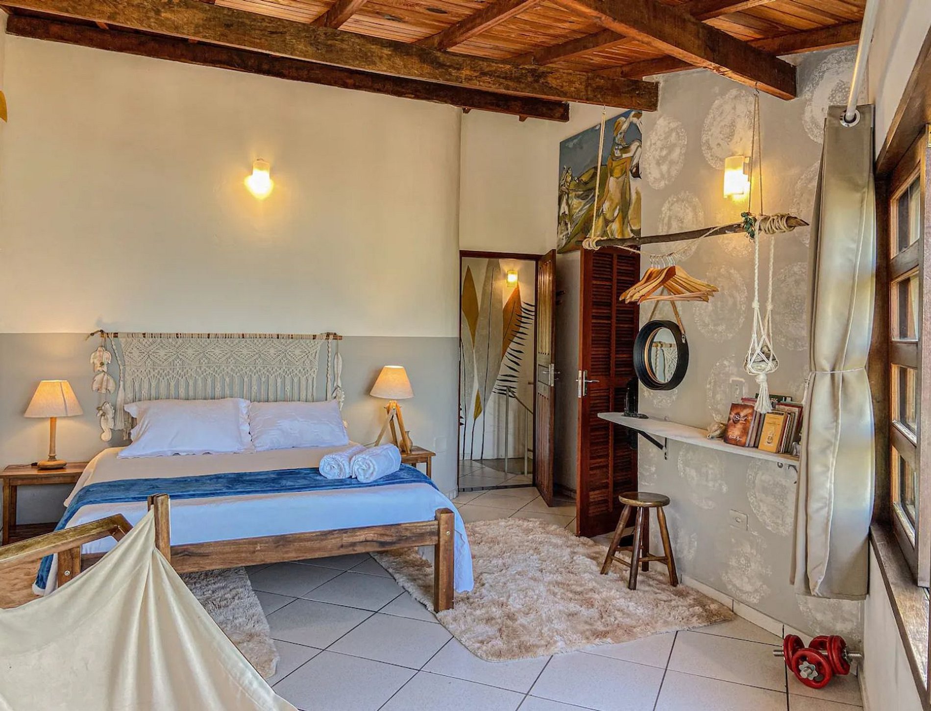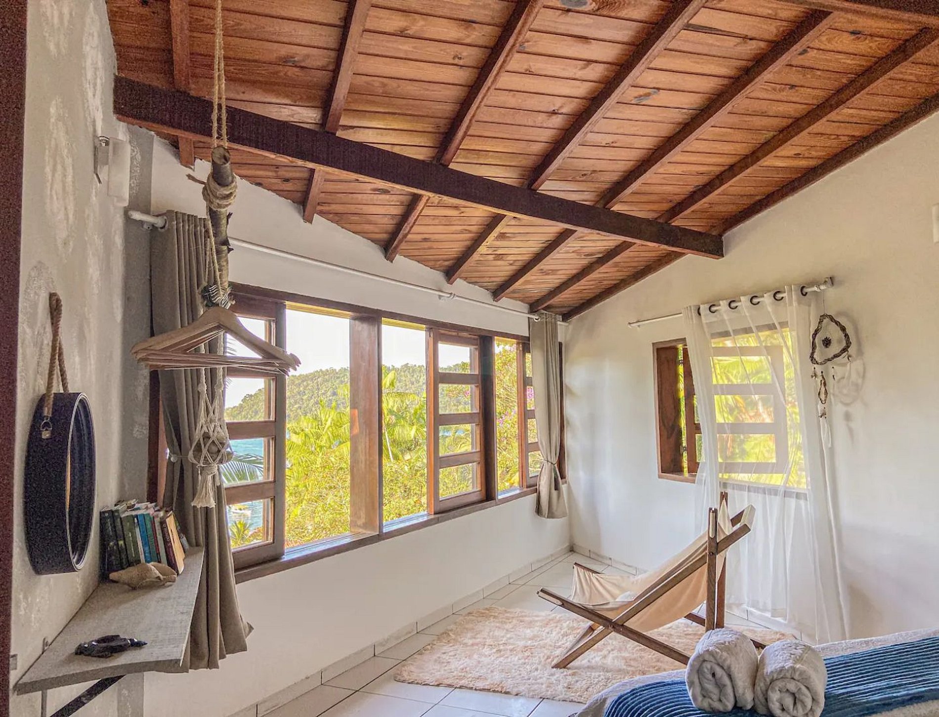 A Casa Arte em Paraty oferece uma vista deslumbrante para o mar, ideal para quem busca tranquilidade e contato com a natureza. A acomodação conta com duas suítes confortáveis, equipadas com ar-condicionado. Com duas camas queen, uma cama de solteiro e um sofá cama, acomoda até 6 hóspedes com conforto. Com um design acolhedor e cheio de personalidade, é perfeita para relaxar e aproveitar momentos inesquecíveis a menos de 50 metros da praia!