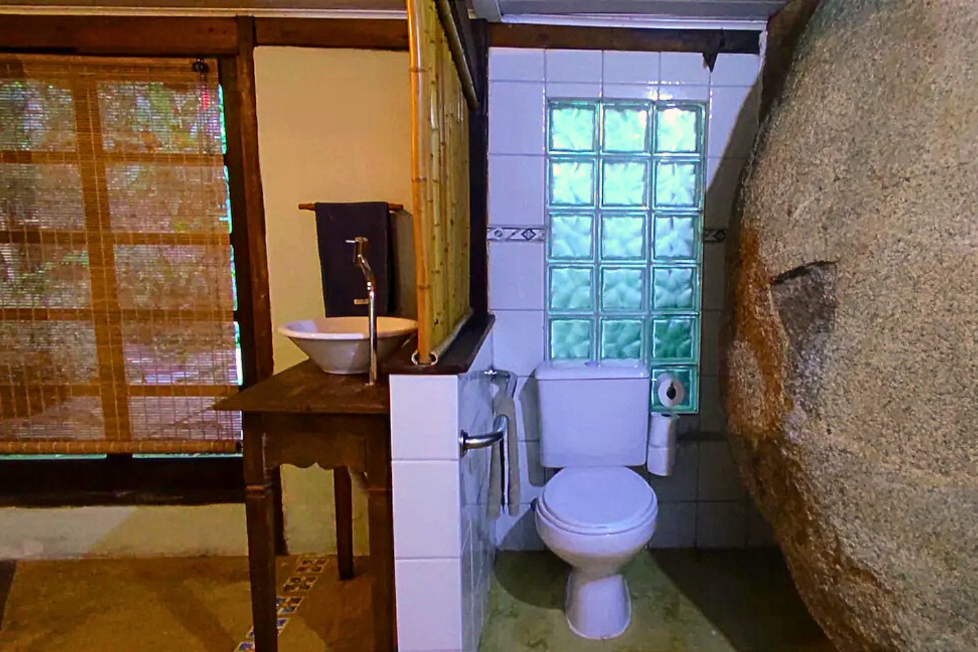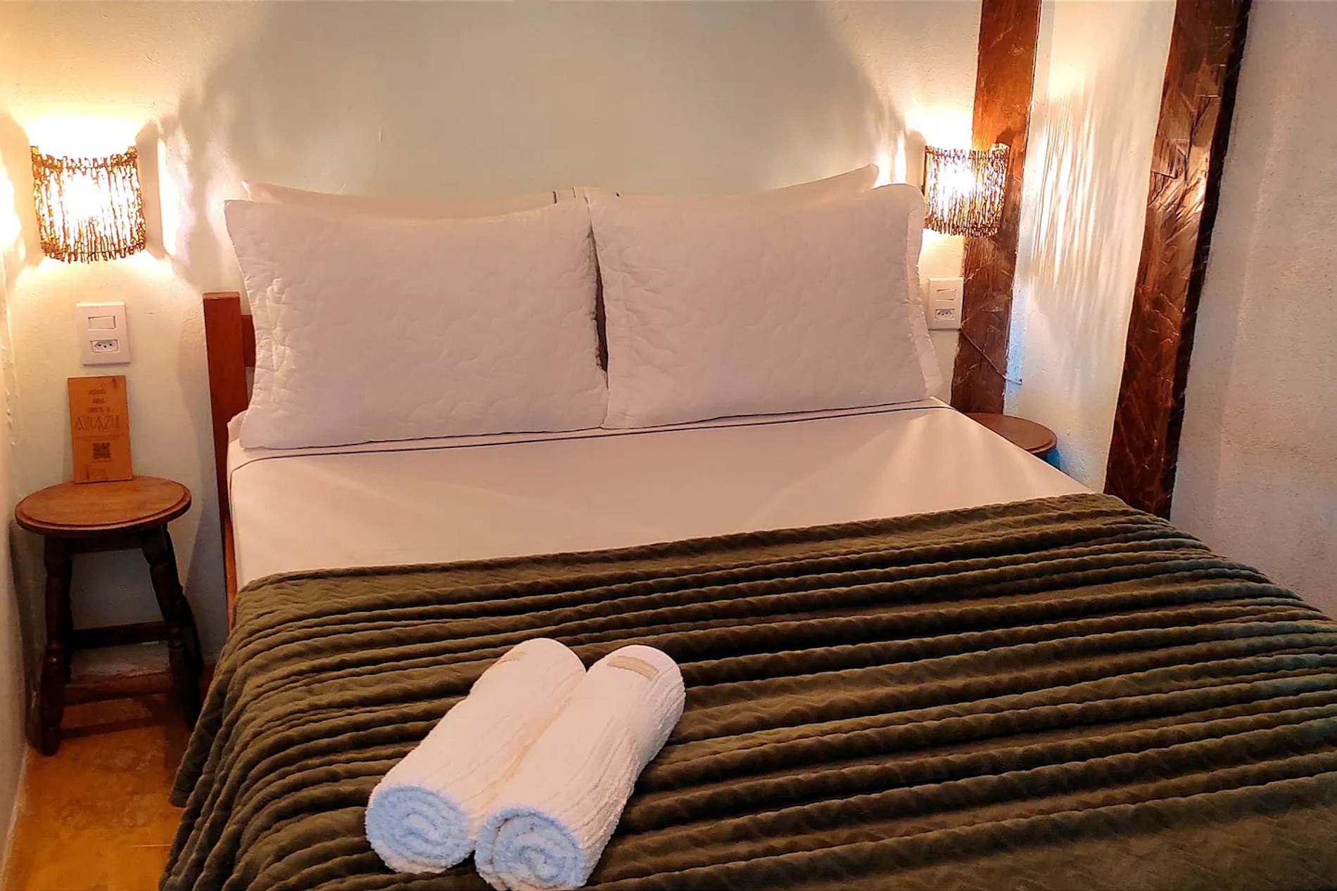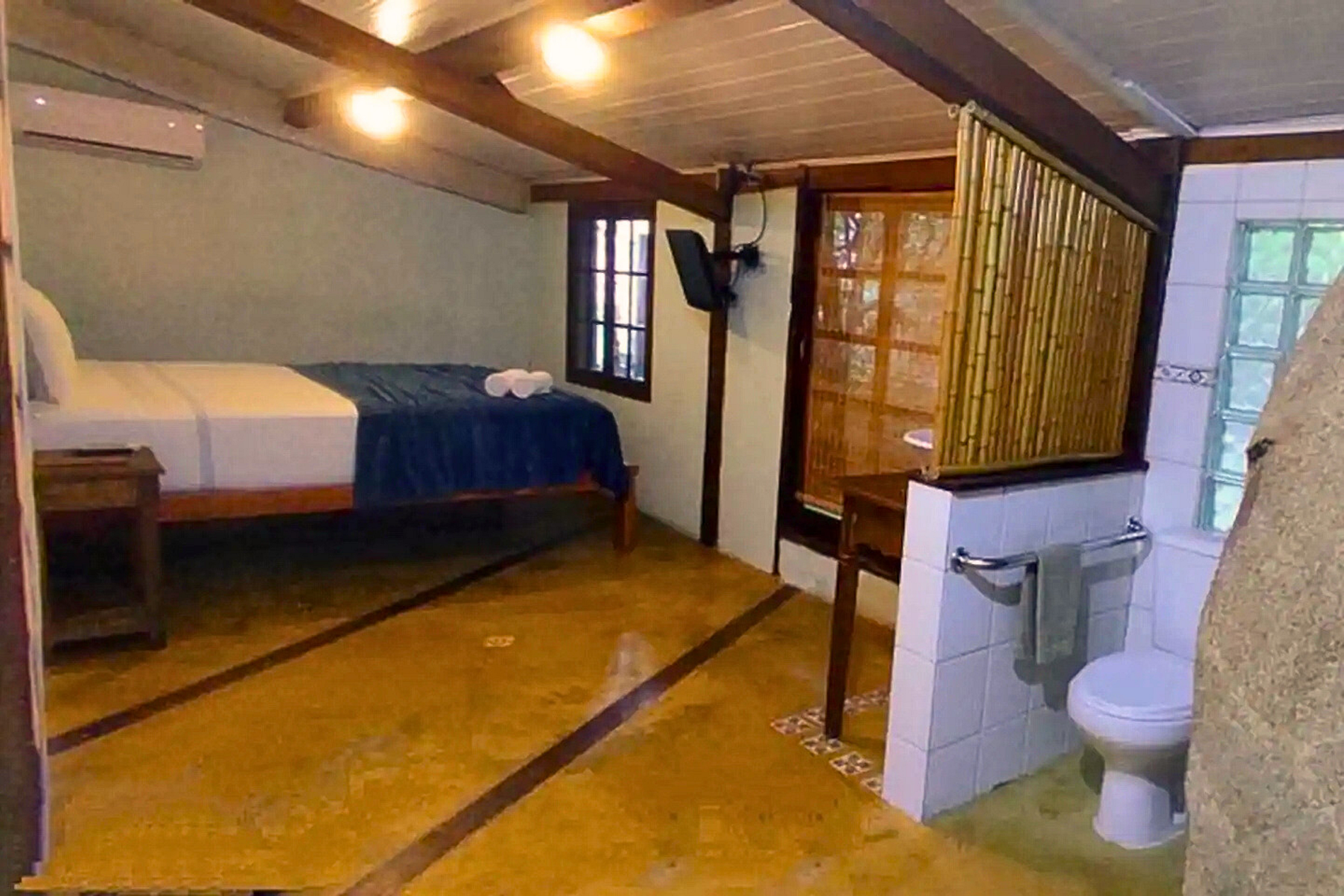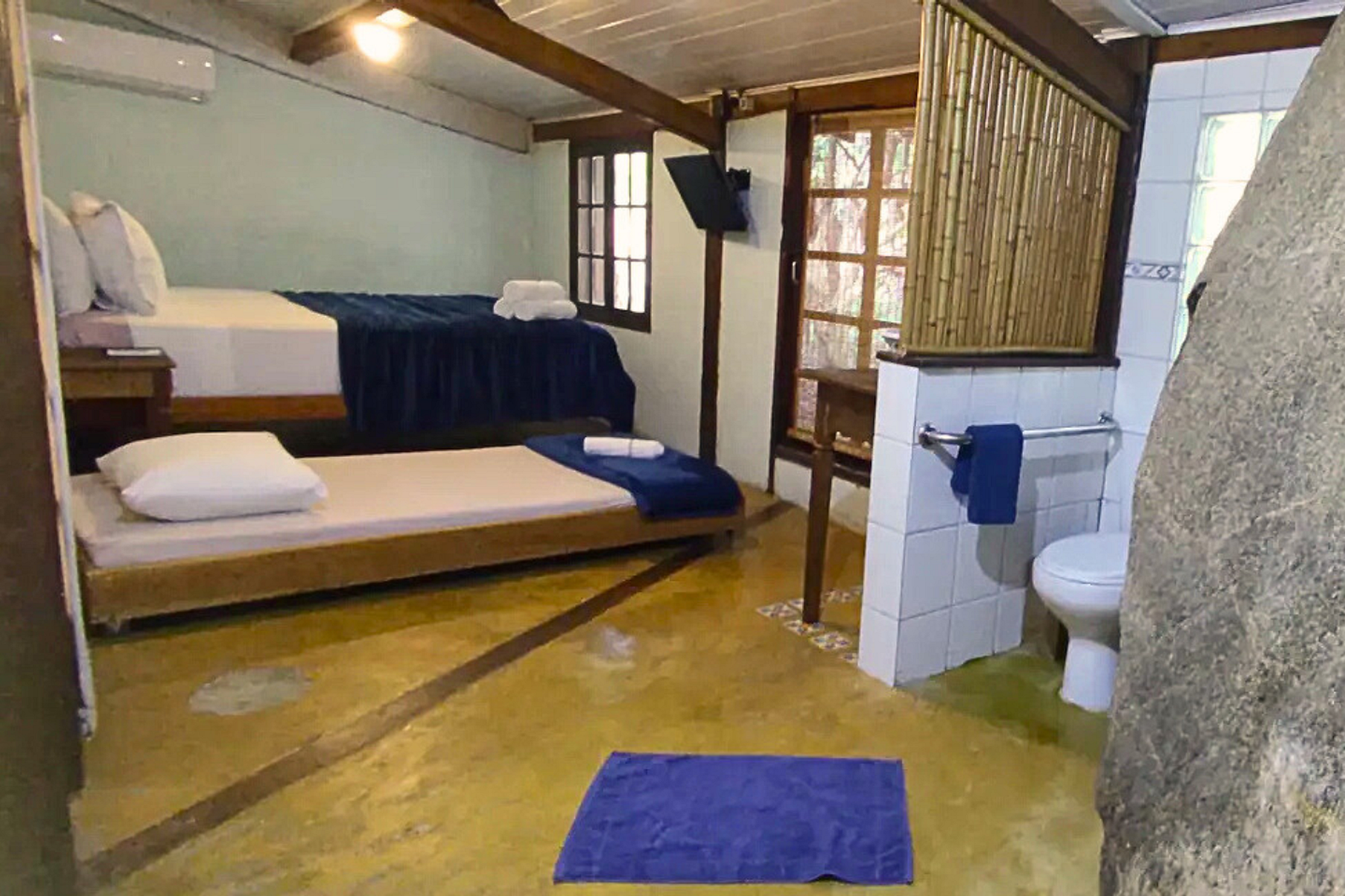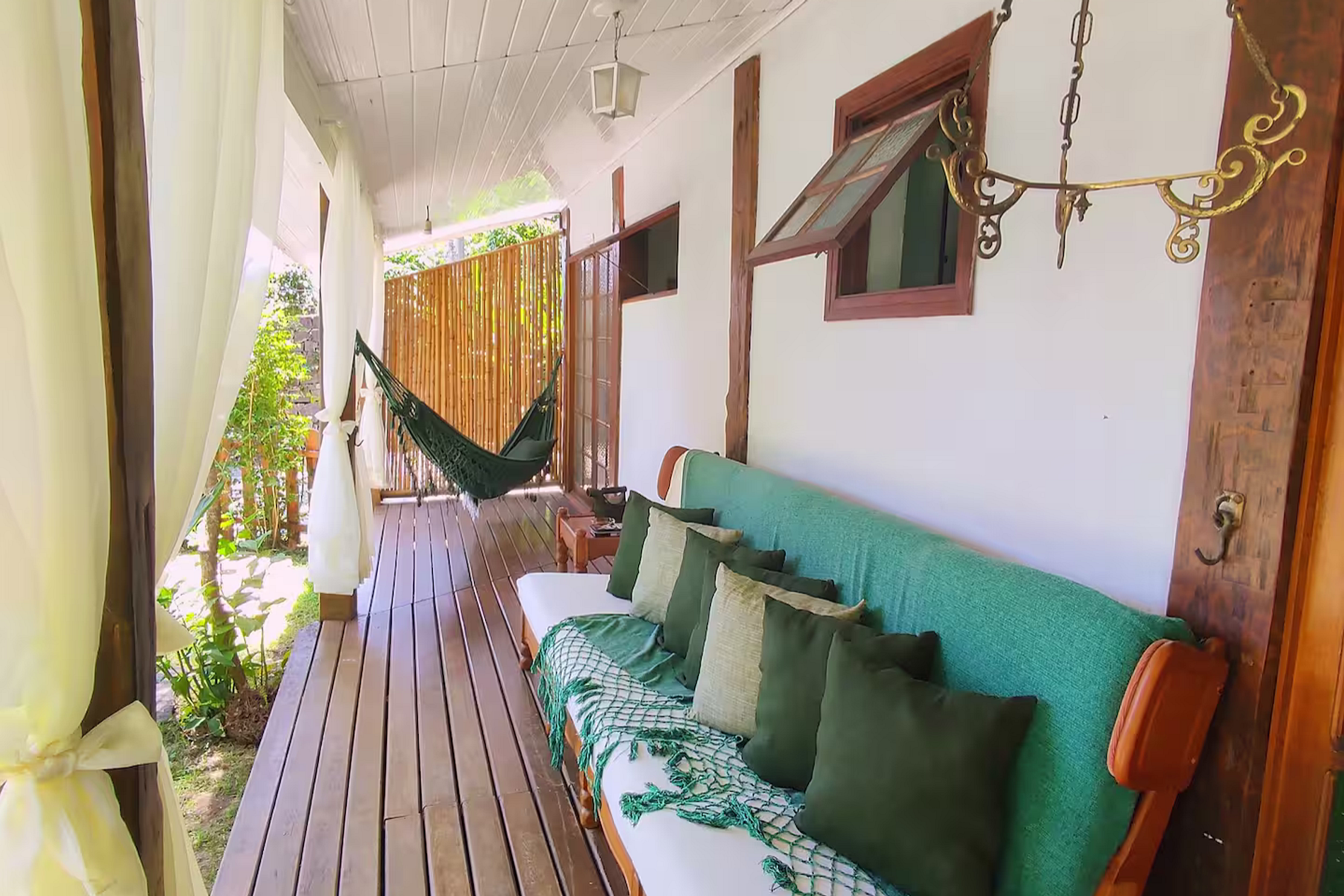 A partir do 3 hóspedes a segunda suíte da varanda (suíte ‘Araça’) é liberada. A partir do 5 hóspedes a terceira suíte (suíte ‘Jabuticaba’, com lavabo e sem ducha) é liberada.
