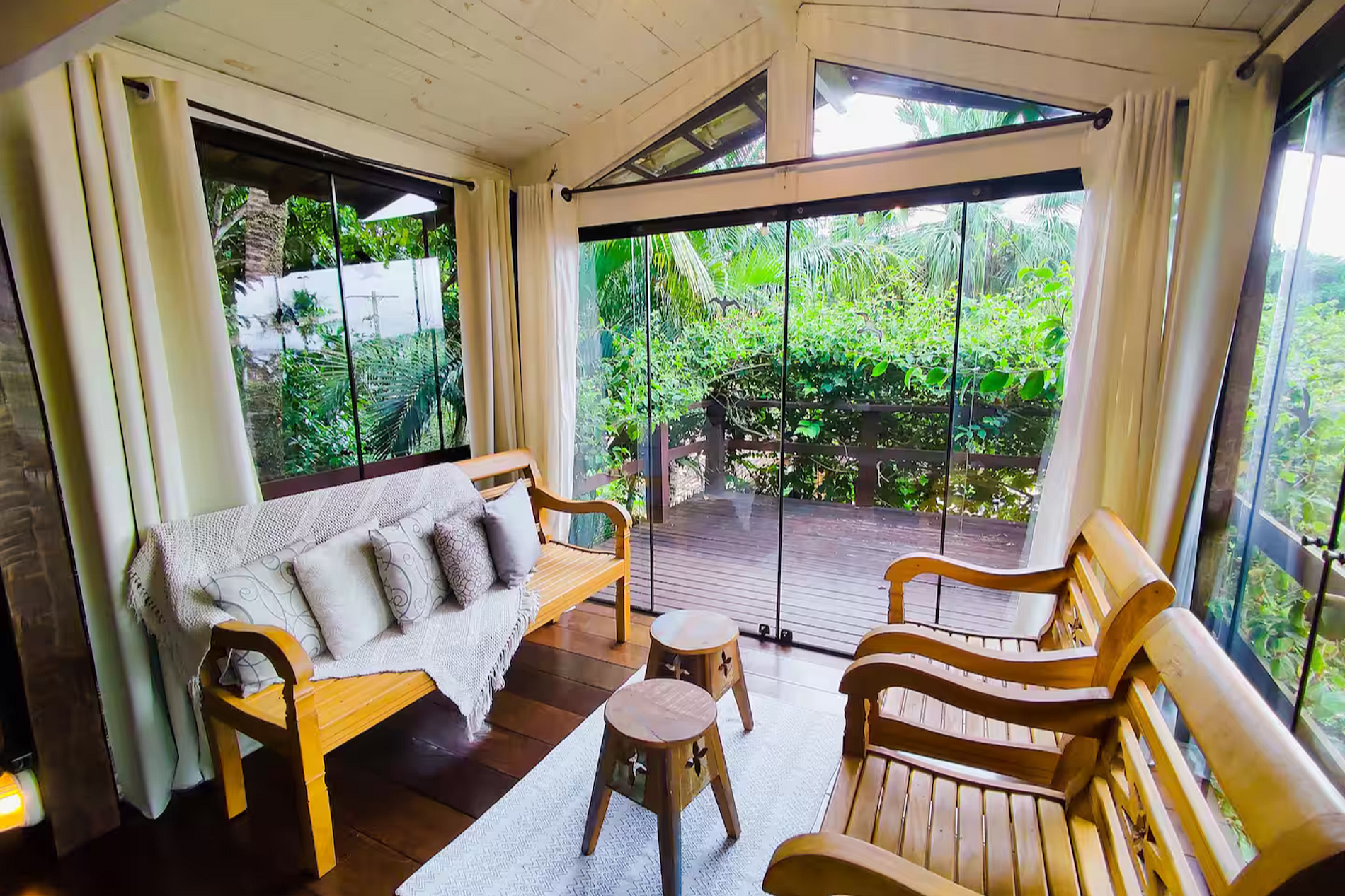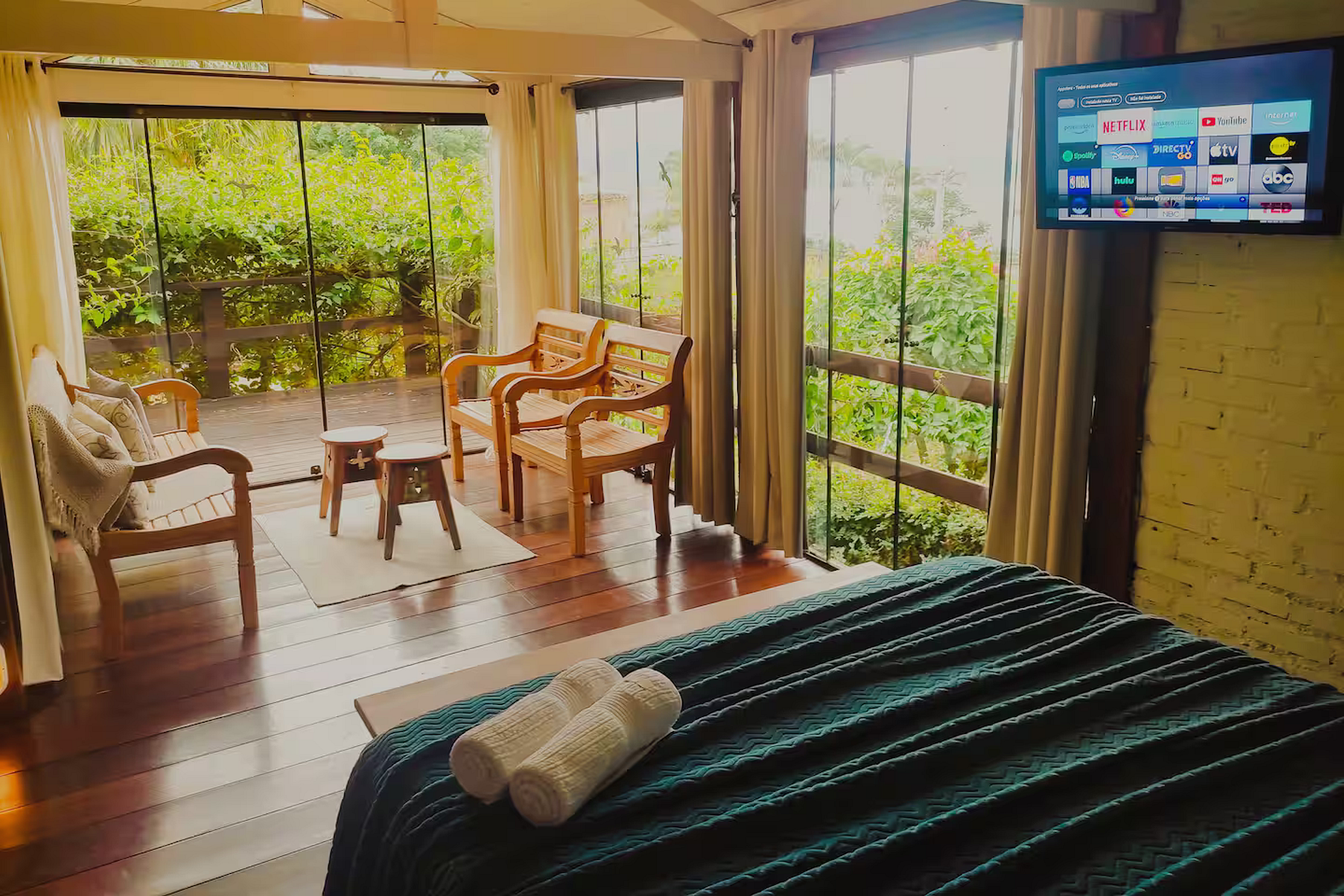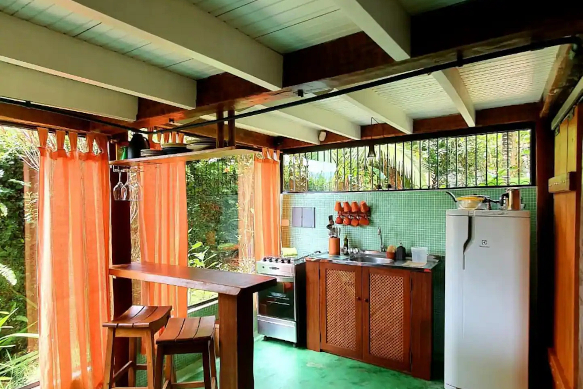 Localizado a 400m da Praia Grande, o chalé conta com uma suíte com ar condicionado e televisão, cozinha super bem equipada e jardim amplo, para as crianças e pets brincarem com segurança. A varanda do andar superior tem uma vista maravilhosa da praia <3