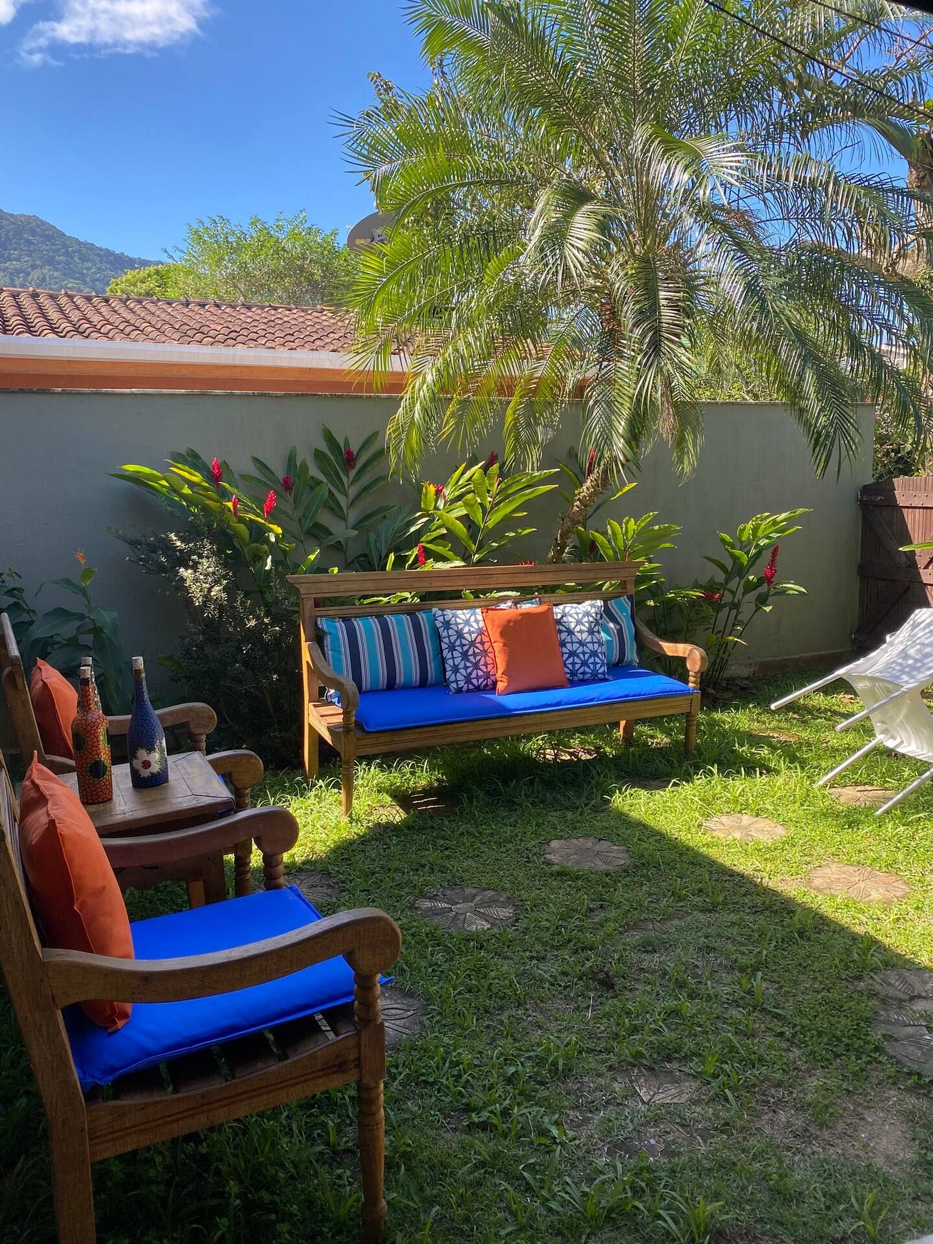 Casa charmosa no Condomínio Capitanias, a apenas 50m do mar! São 2 suítes com ar-condicionado, mezanino com TV/Sky, salas de estar e jantar, cozinha completa, área externa privativa com churrasqueira e muito verde, além de vaga para 4 carros. O condomínio oferece 3 piscinas, sauna, sala de jogos, quadra de tênis, parquinho, campo de futebol e muita área verde. Perfeita para curtir fins de semana, férias ou feriados com conforto e lazer, na rua da praia e com ciclovia na porta.