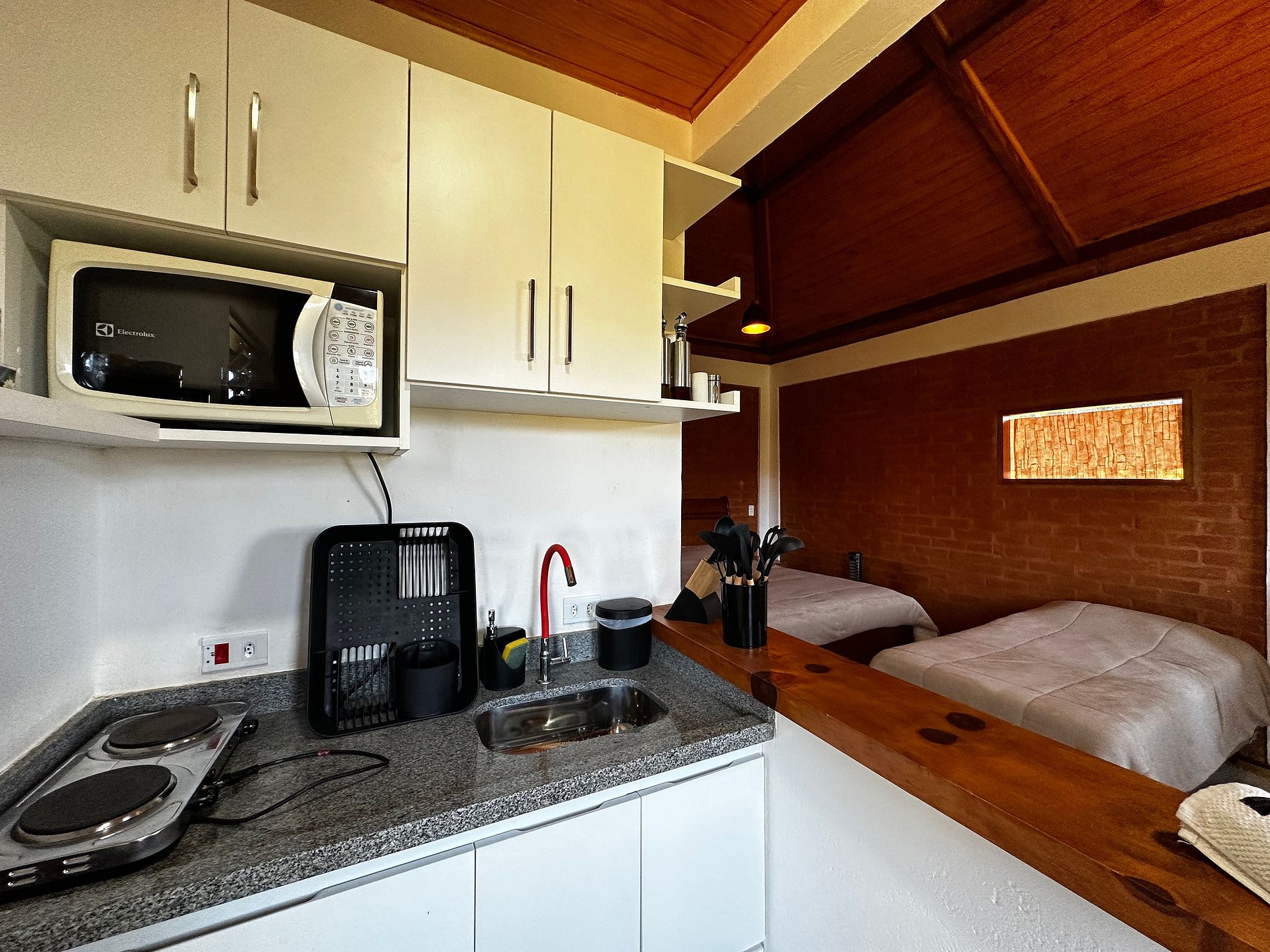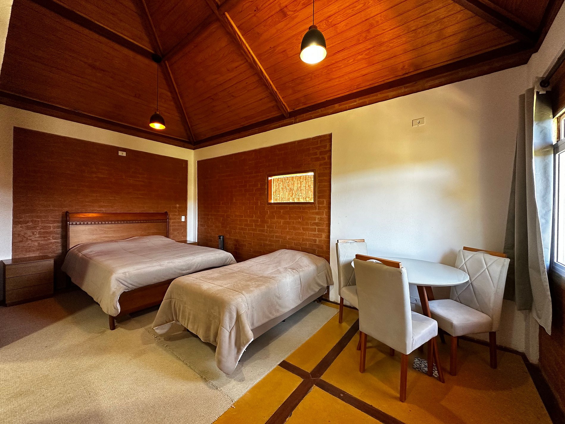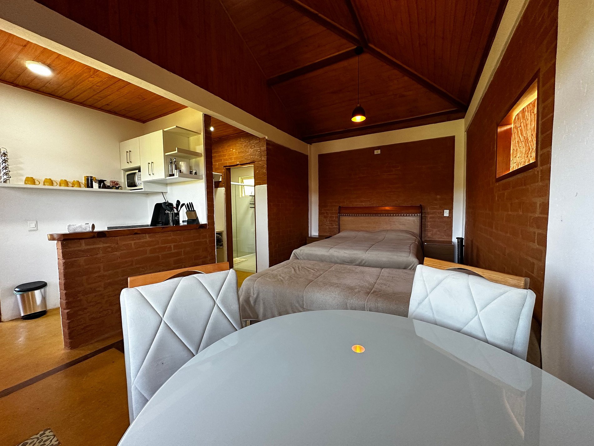 Estamos localizados a 4 min do centro turístico, o bairro do Capivari (1,6km), em uma área ampla com vista linda para o vale! O conjunto Saint Louis conta com 5 suítes para 3 pessoas, todas com cozinha compacta totalmente equipada, área de jantar, uma cama queen e outra de solteiro, banheiro privativo com chuveiro a gás e aquecedor portátil. Contamos com estacionamento dentro da propriedade. Não fornecemos roupas de cama e de banho, somente travesseiros e cobertas.