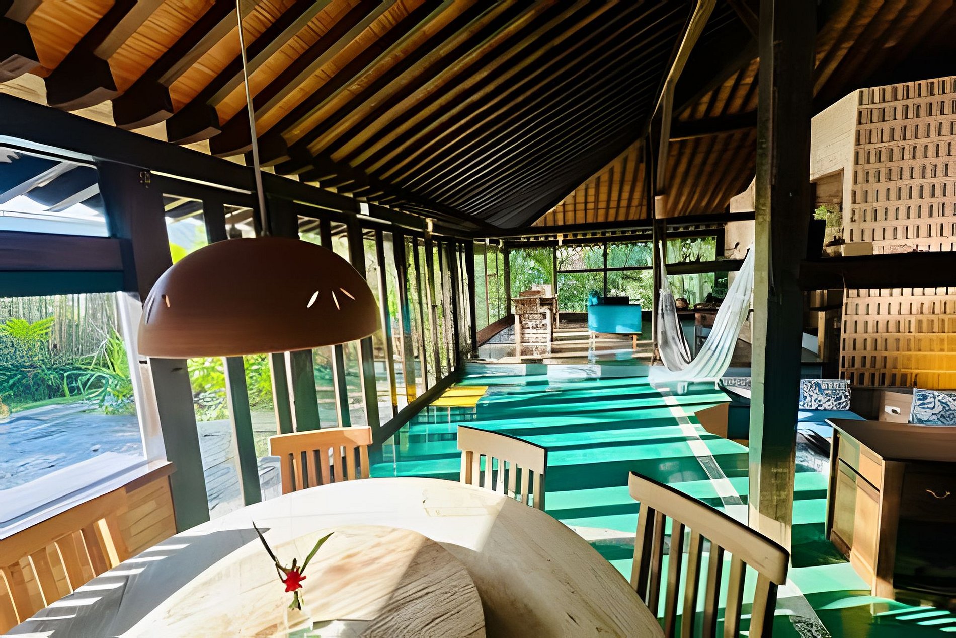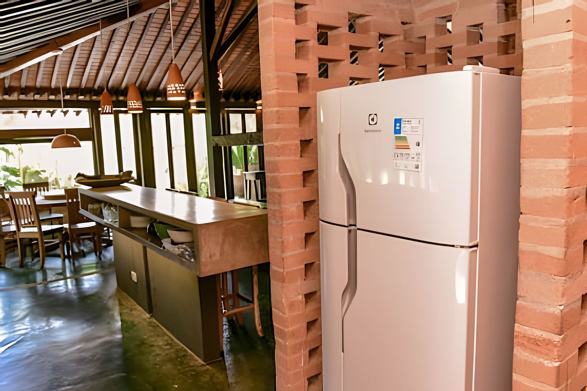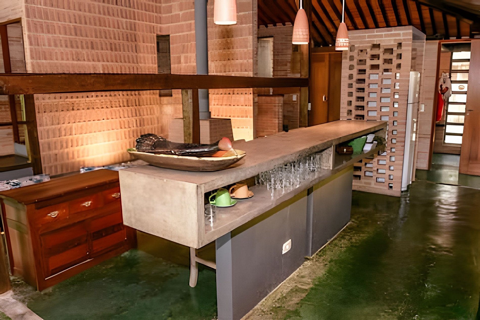 Localizada pé na areia na Praia da Feiticeira, a propriedade conta com cozinha, sala de estar e jantar integradas, perfeitas para reunir família e amigos em um ambiente elegante e descontraído.