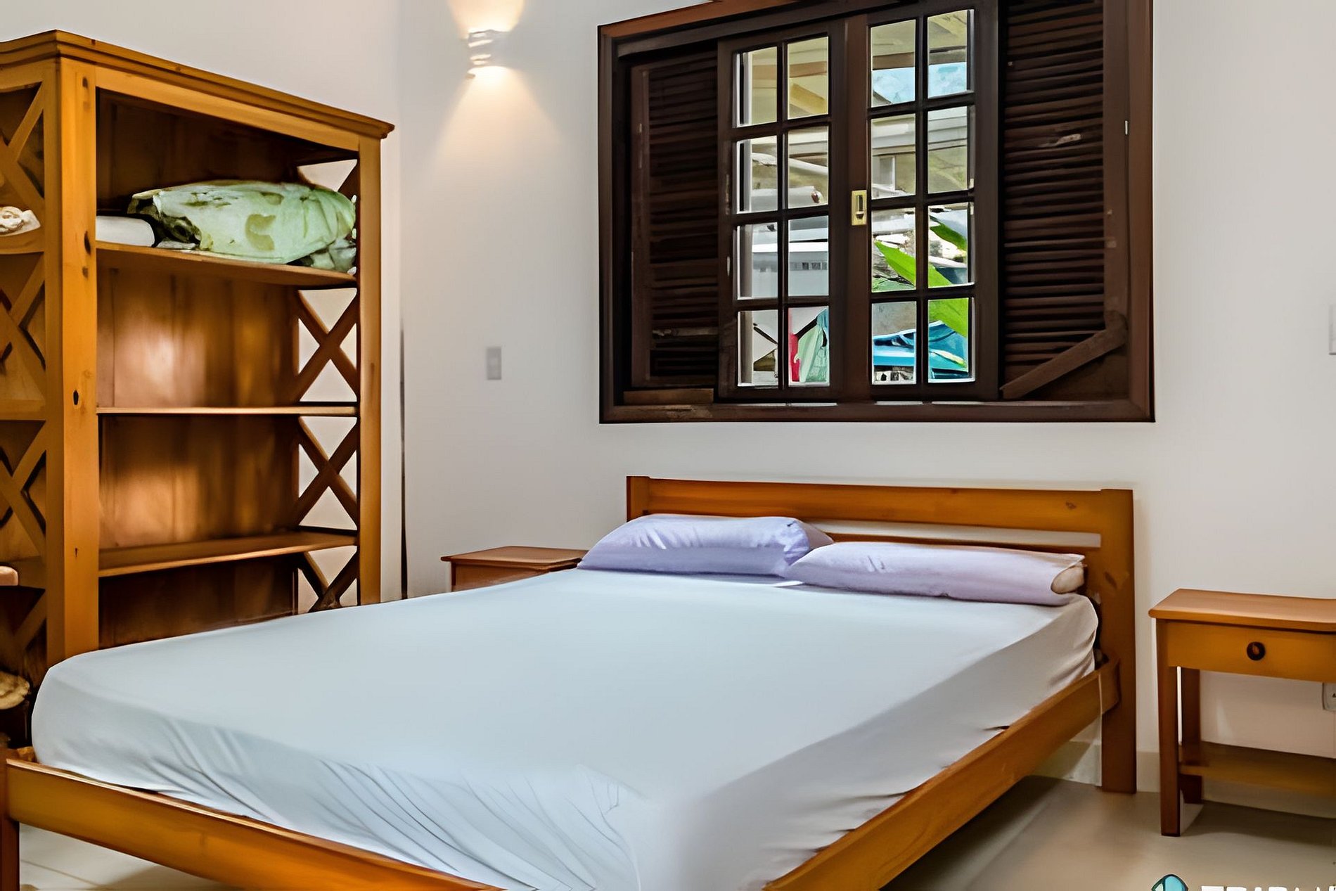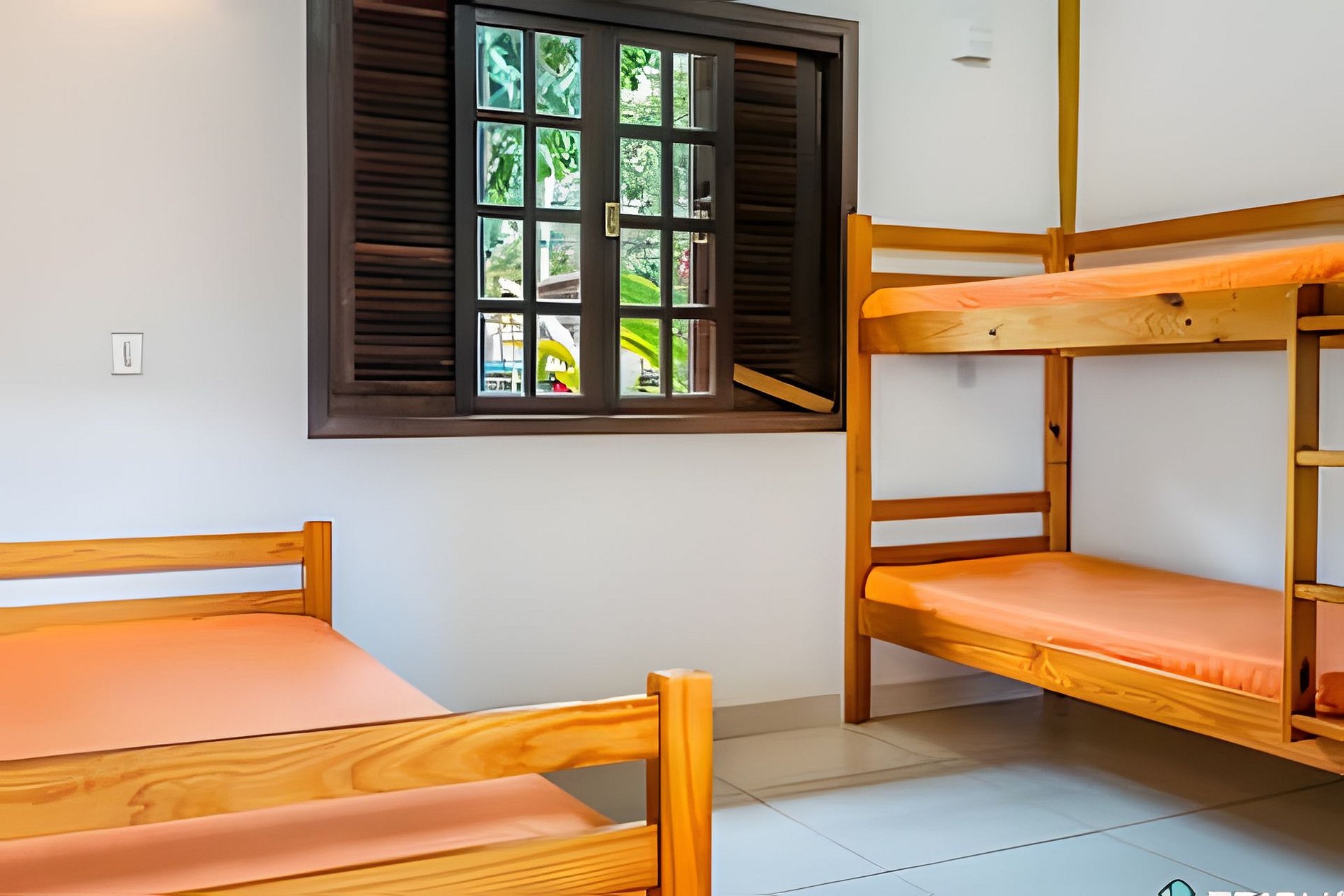 Roupas de cama e banho não estão incluídas, mas podem ser alugadas por R$60 por pessoa para toda a estadia, trazendo mais praticidade para sua viagem. O mezanino é arejado e iluminado, mas não conta com ar-condicionado nem cortinas blackout — ideal para quem gosta de acordar com a luz natural.