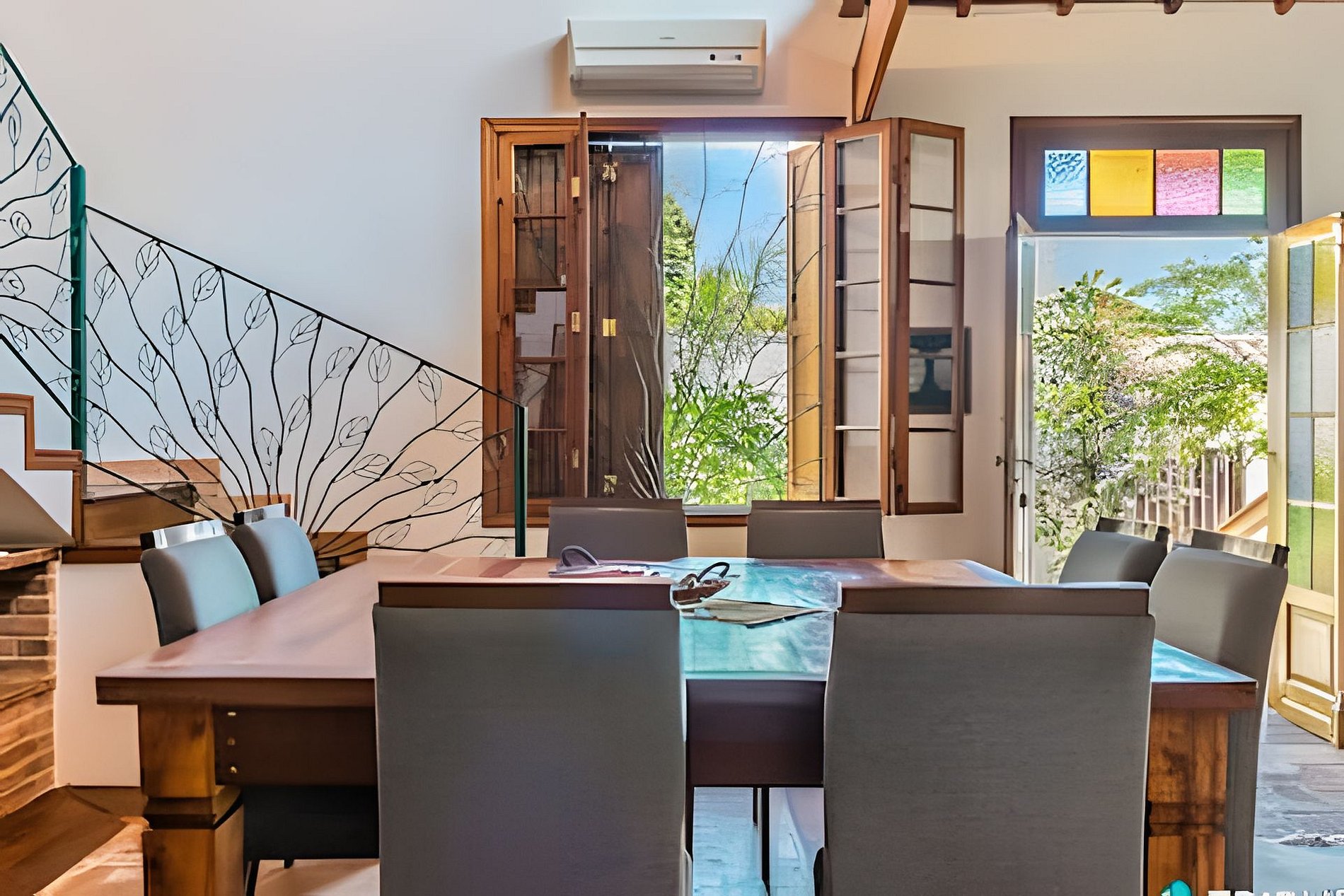 Uma casa incrível, com decoração e estrutura impecáveis, pertinho da praia! A Casa Vitral acomoda até 13 pessoas em 3 suítes confortáveis. Com cozinha equipada, ampla sala de estar com ar condicionado, lavanderia, piscina e churrasqueira, o espaço é perfeito para momentos de lazer. O grande jardim é ideal para crianças e pets brincarem à vontade. Localizada a apenas 5 minutos a pé da Praia da Feiticeira e a 5 minutos dos principais restaurantes, mercados, farmácias e adegas.