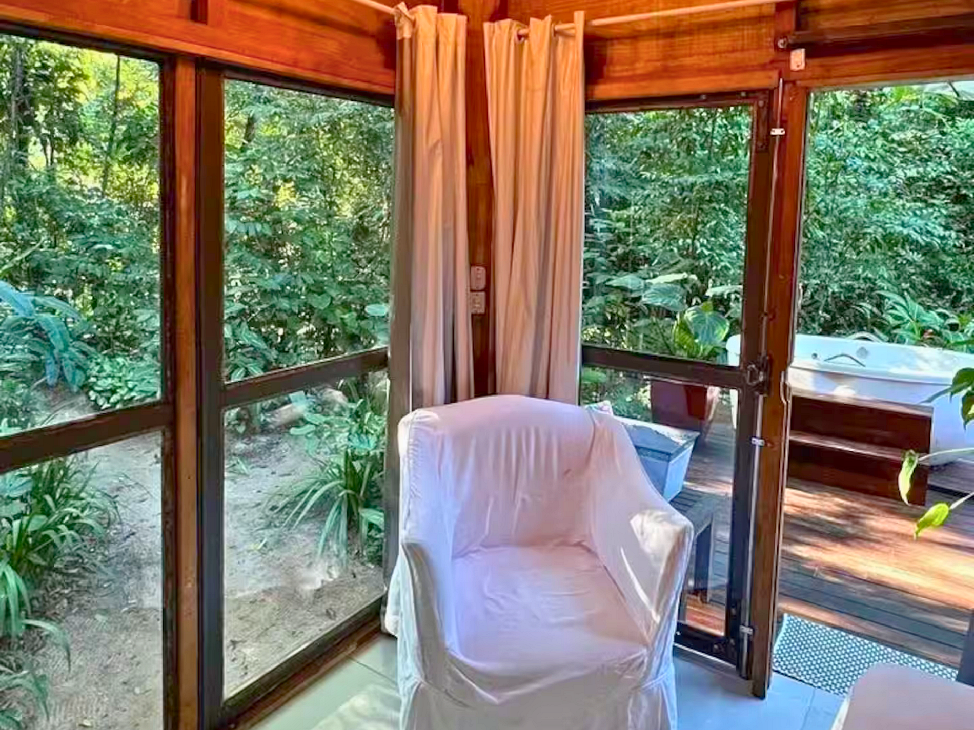 Refúgio perfeito para casais, nosso chalé romântico está envolto por um rio cristalino no coração da Mata Atlântica. Cercado por natureza exuberante, oferece total privacidade e charme rústico. Relaxe na jacuzzi ao som das águas, desfrute de uma cozinha totalmente equipada e durma com o canto dos pássaros. Um paraíso exclusivo, onde luxo e simplicidade se encontram para momentos inesquecíveis a dois.