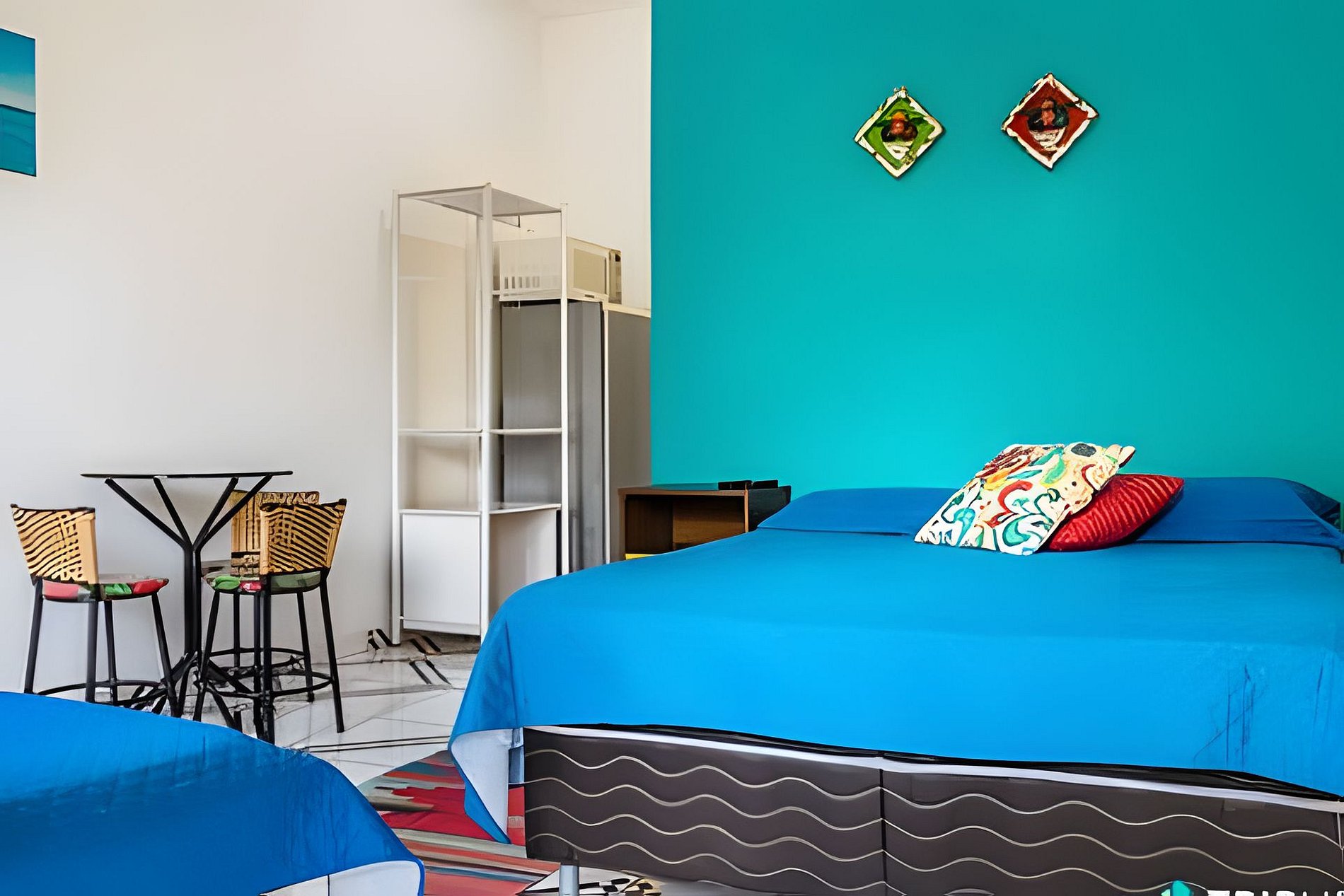 - Não conta com cozinha, somente geladeira e micro-ondas