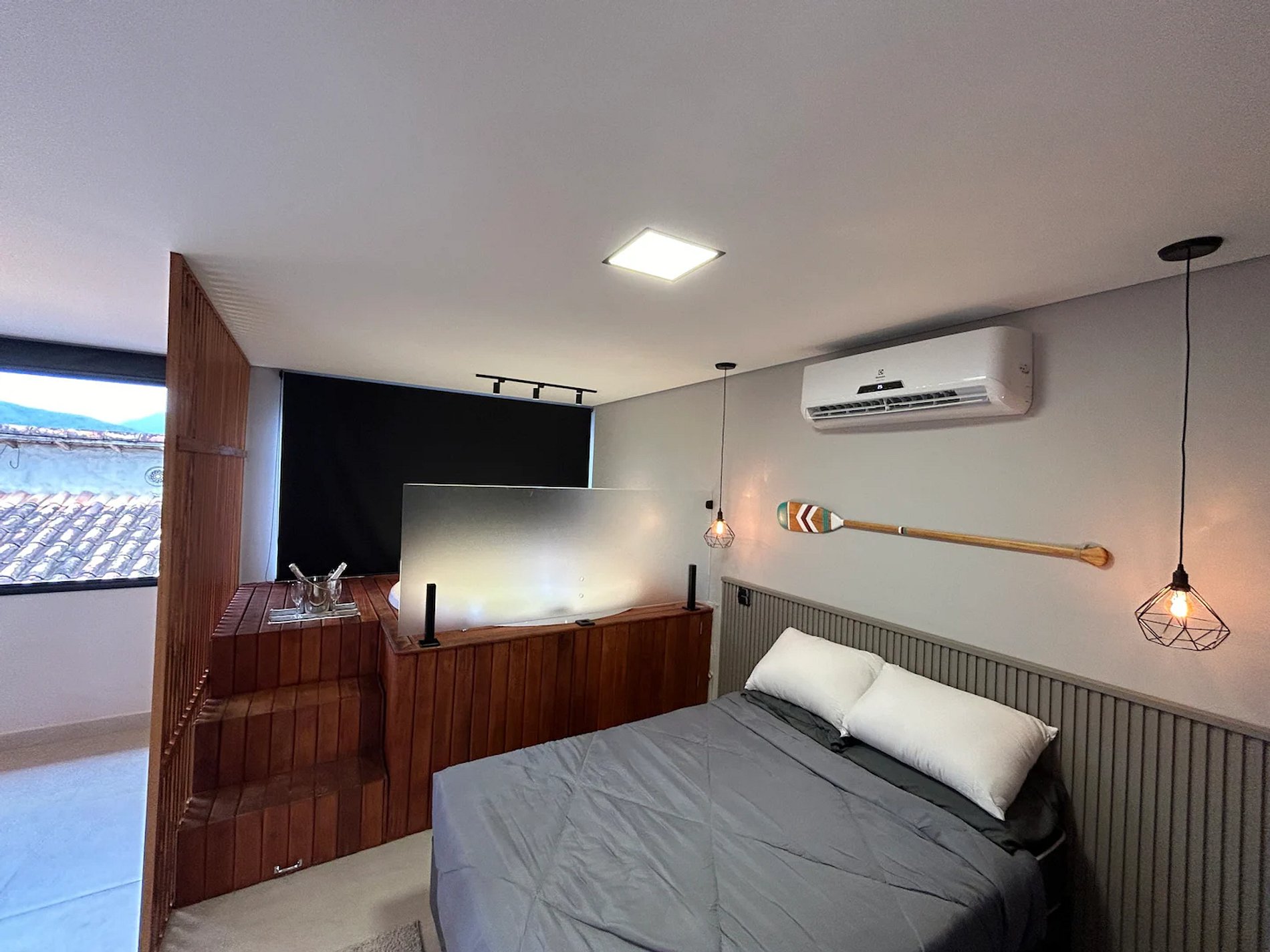 Studio aconchegante em Ubatuba, ideal para casais que querem fugir da cidade. O espaço conta com uma cozinha completa equipada com utensílios e eletrodomésticos, perfeita para preparar suas refeições favoritas. Para momentos de relaxamento, desfrute de uma jacuzzi privativa. Localizado em uma área tranquila, próximo às praias e ao comércio local, é o refúgio ideal para quem busca conforto e praticidade durante sua estadia no litoral. Ambiente moderno e bem decorado.