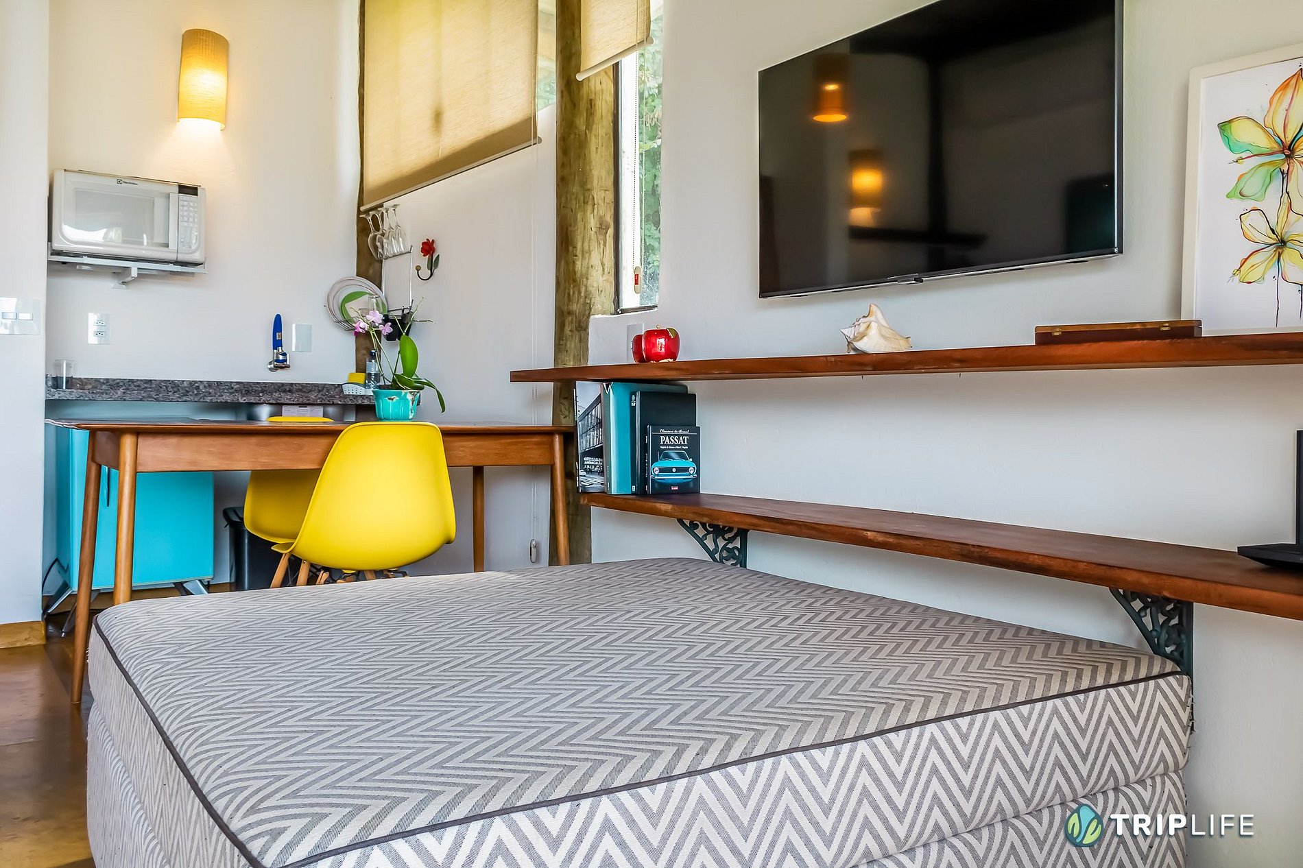 Desfrute de momentos inesquecíveis em nossa suíte para casal em Ilhabela, um refúgio perfeito para quem busca conforto e charme à beira-mar. Com uma vista deslumbrante, a acomodação conta com uma cama espaçosa, ar-condicionado e uma cozinha compacta para maior praticidade. O ambiente é aconchegante e ideal para relaxar após um dia explorando as praias paradisíacas da ilha. Desperte com o som das ondas e viva dias incríveis neste cenário único. Reserve agora!
